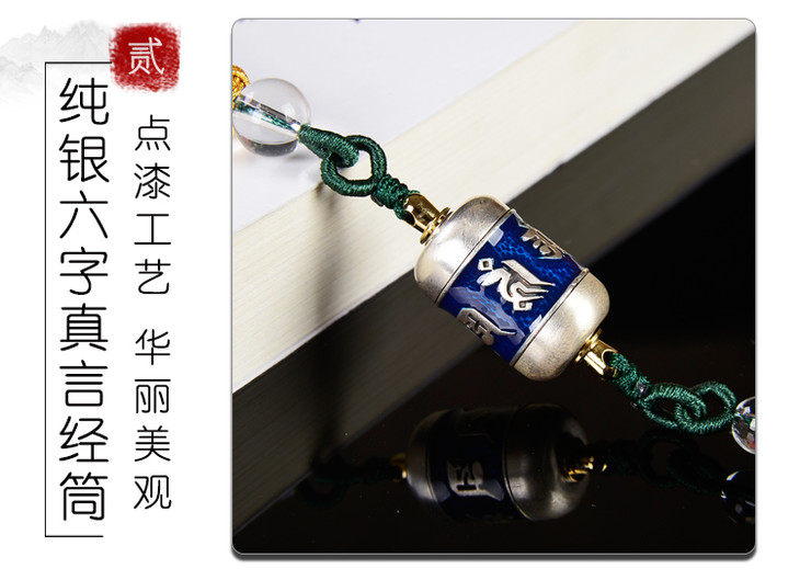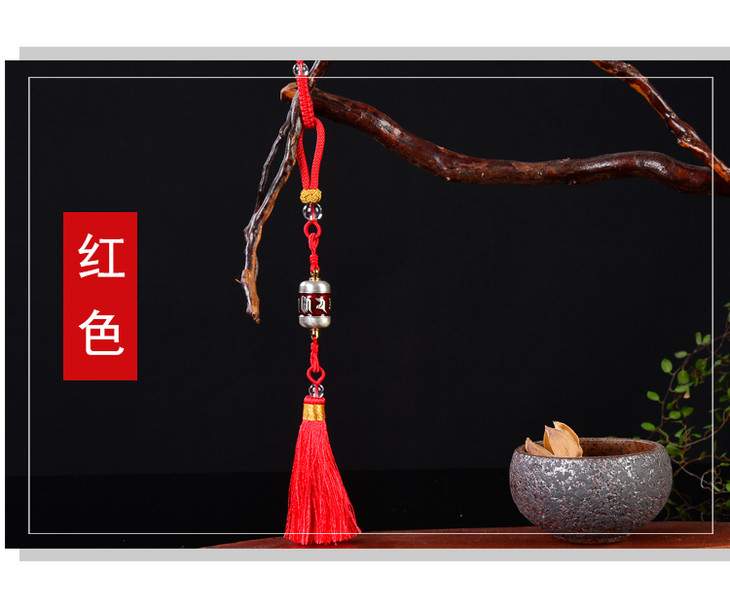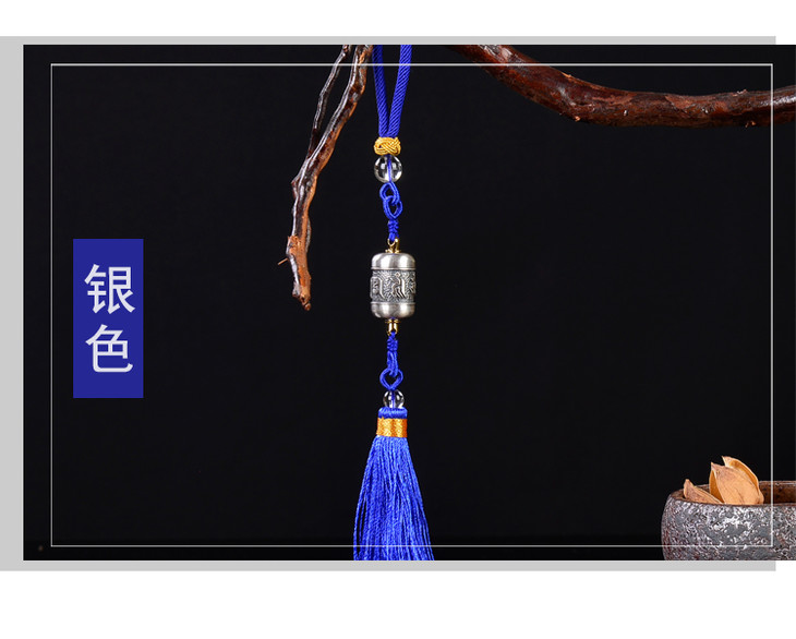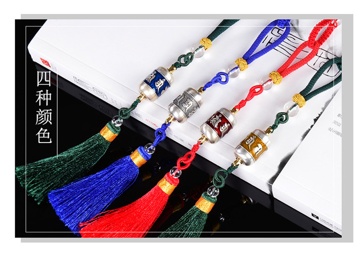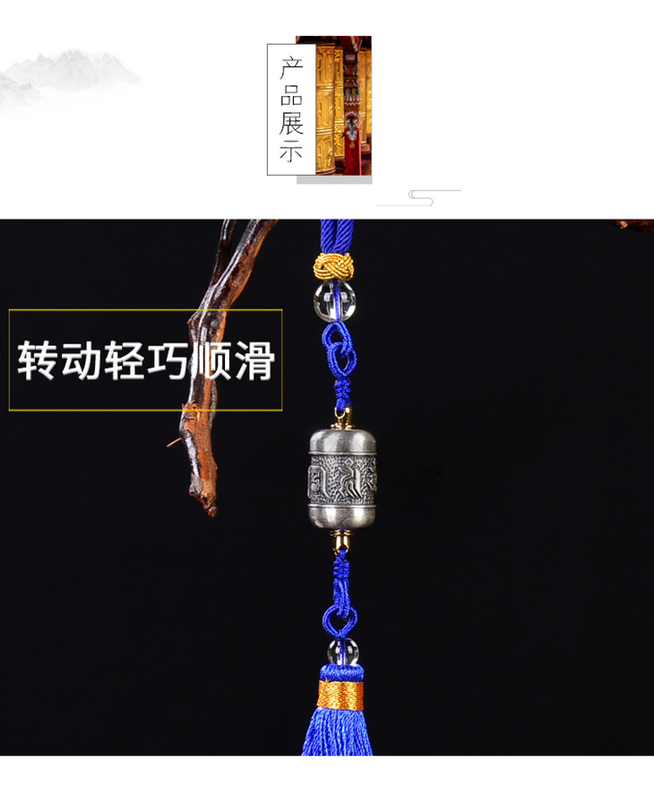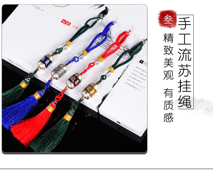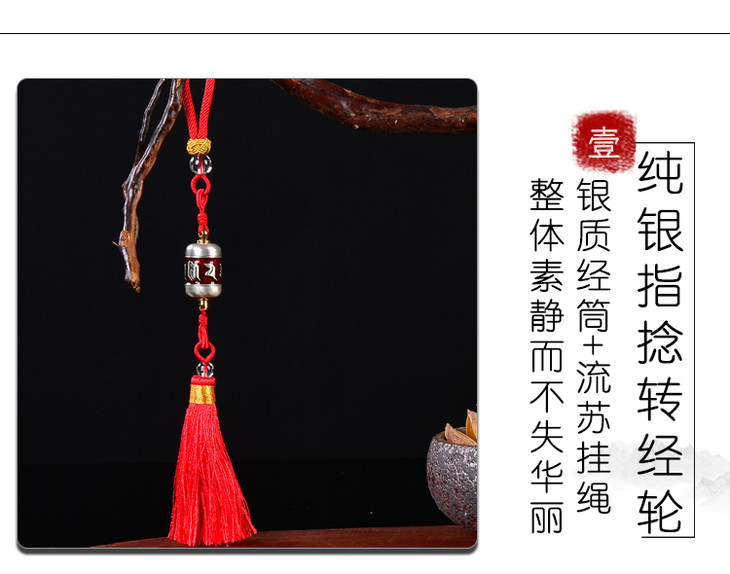 德田纯银指捻转经轮流苏挂件观音心咒 纯银转经筒车挂包挂吊坠