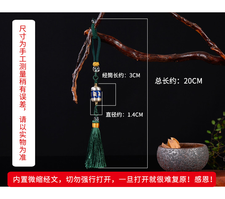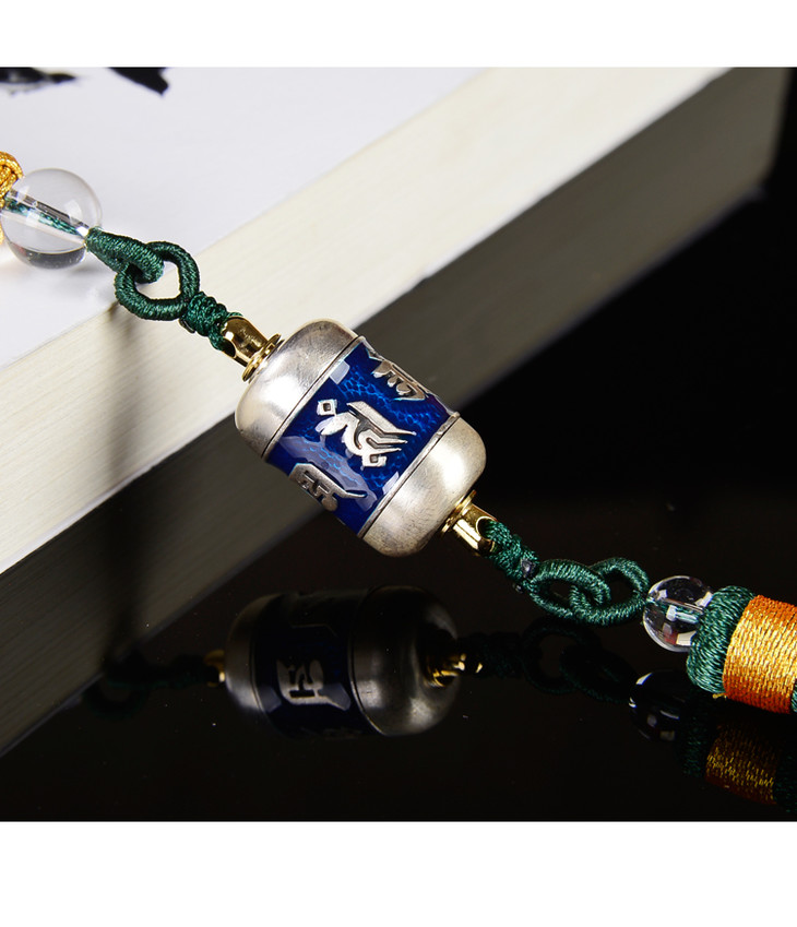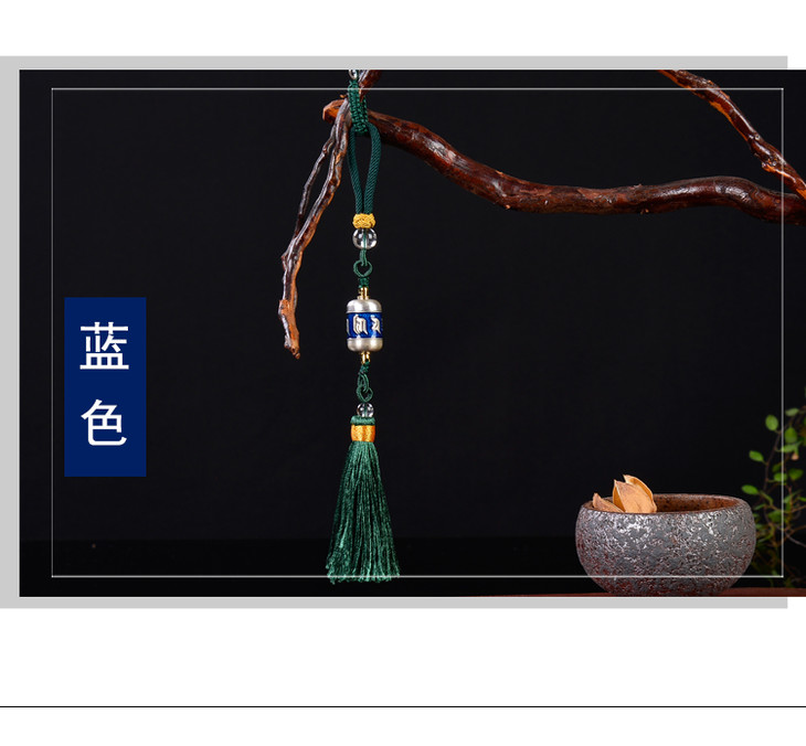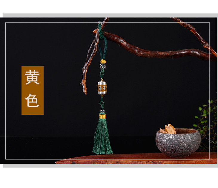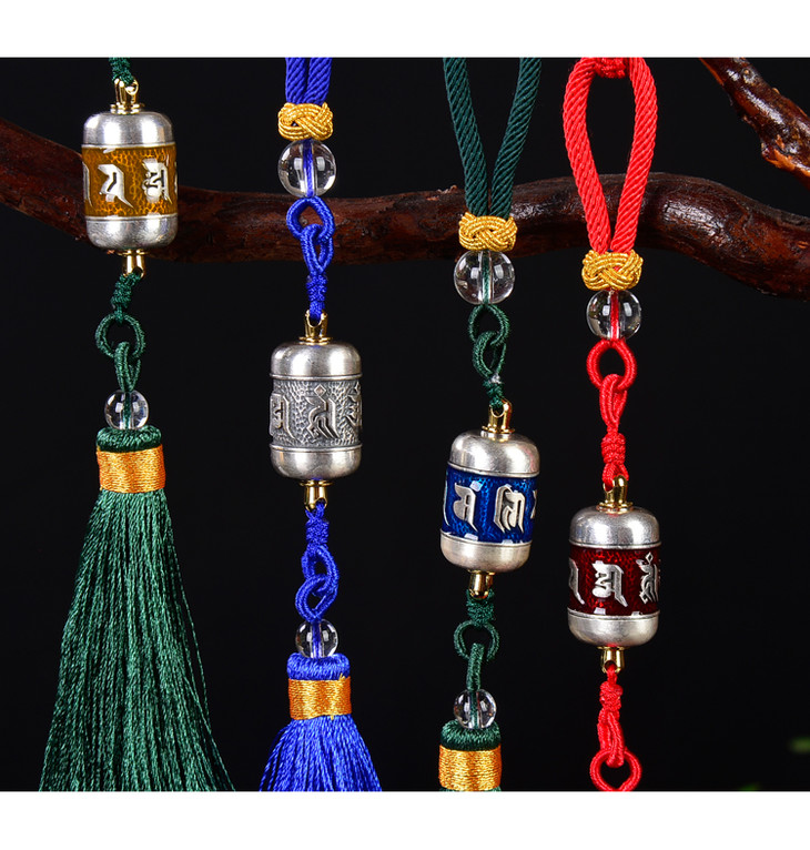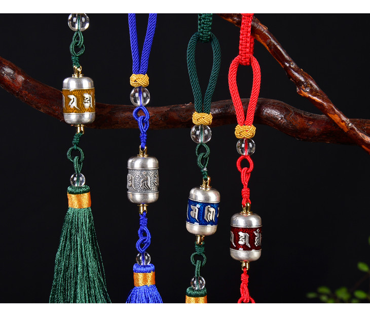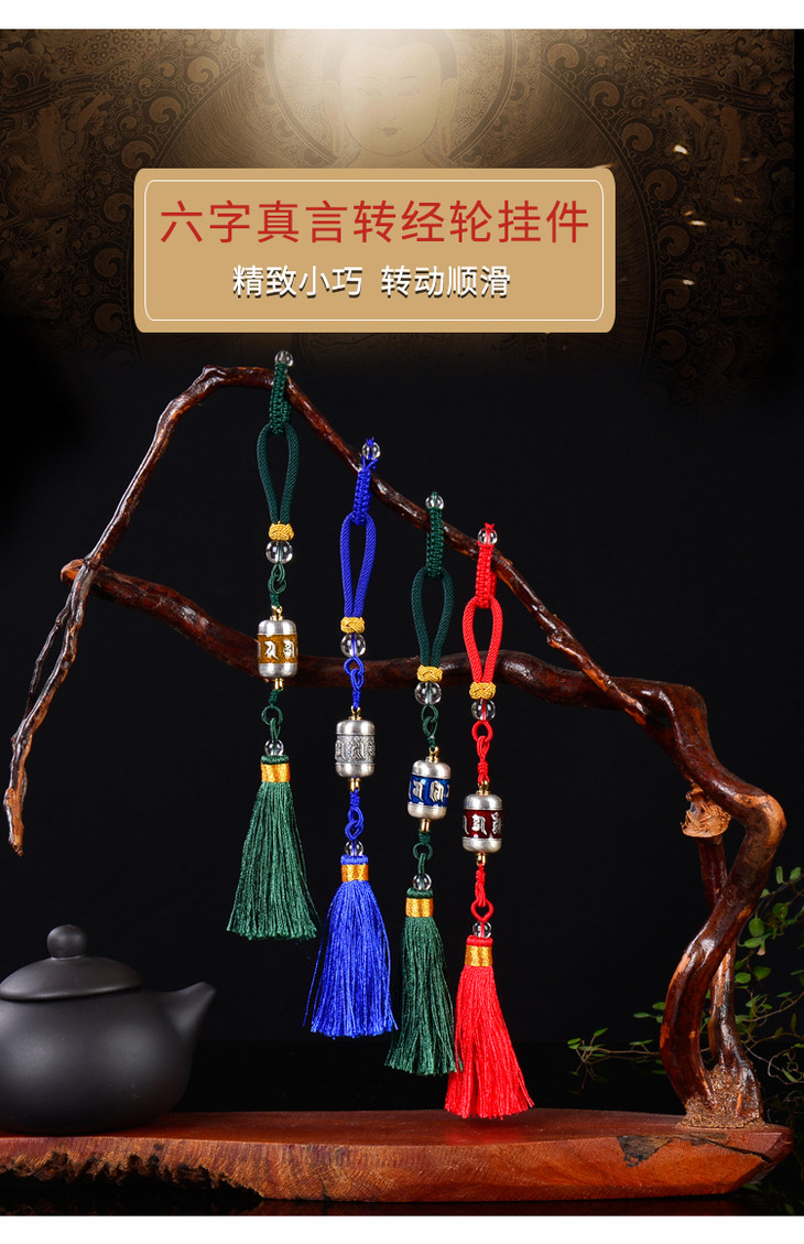 德田纯银指捻转经轮流苏挂件观音心咒 纯银转经筒车挂包挂吊坠