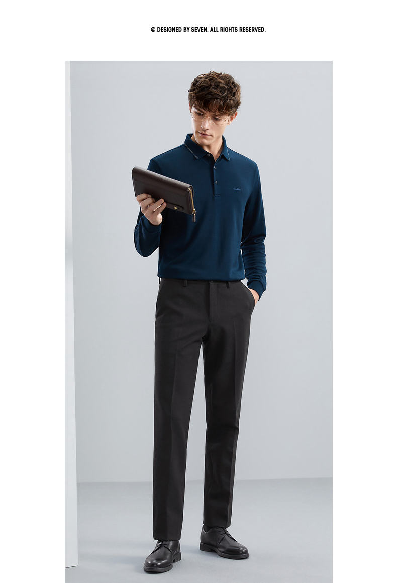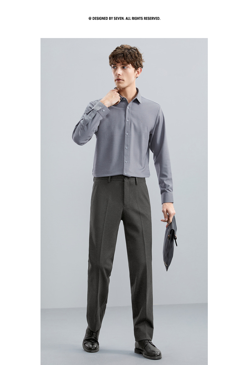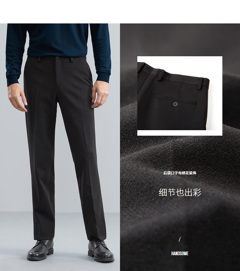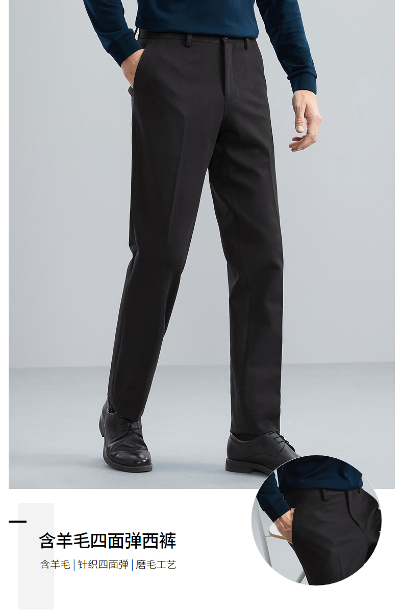 【含羊毛】柒牌男装西裤男士秋冬新款商务休闲针织直筒长裤子 125H70290