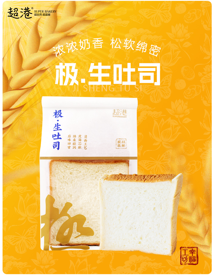 超港创立于1992年,是一家集生产销售面包、蛋糕、传统糕点、中西点于一体的全国性连锁烘焙企业,拥有百余家直营门店。超港以“玩味烘焙、文创美学”为经营理念。