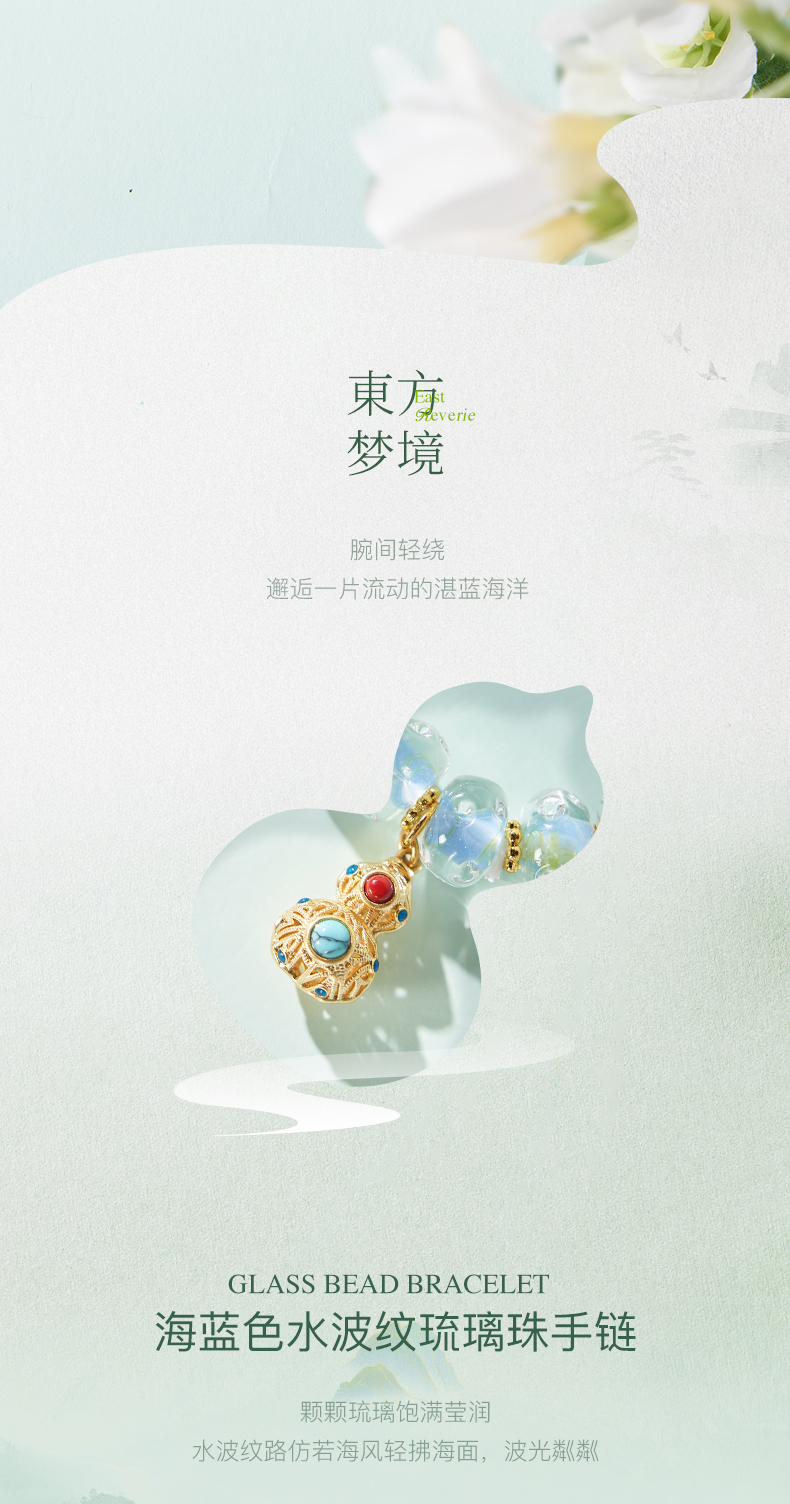 大英博物馆 东方梦境系列 镂空葫芦蓝色琉璃 手链