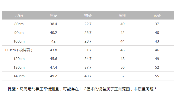 卫衣尺码表(因款式不同衣长会稍微有不同):