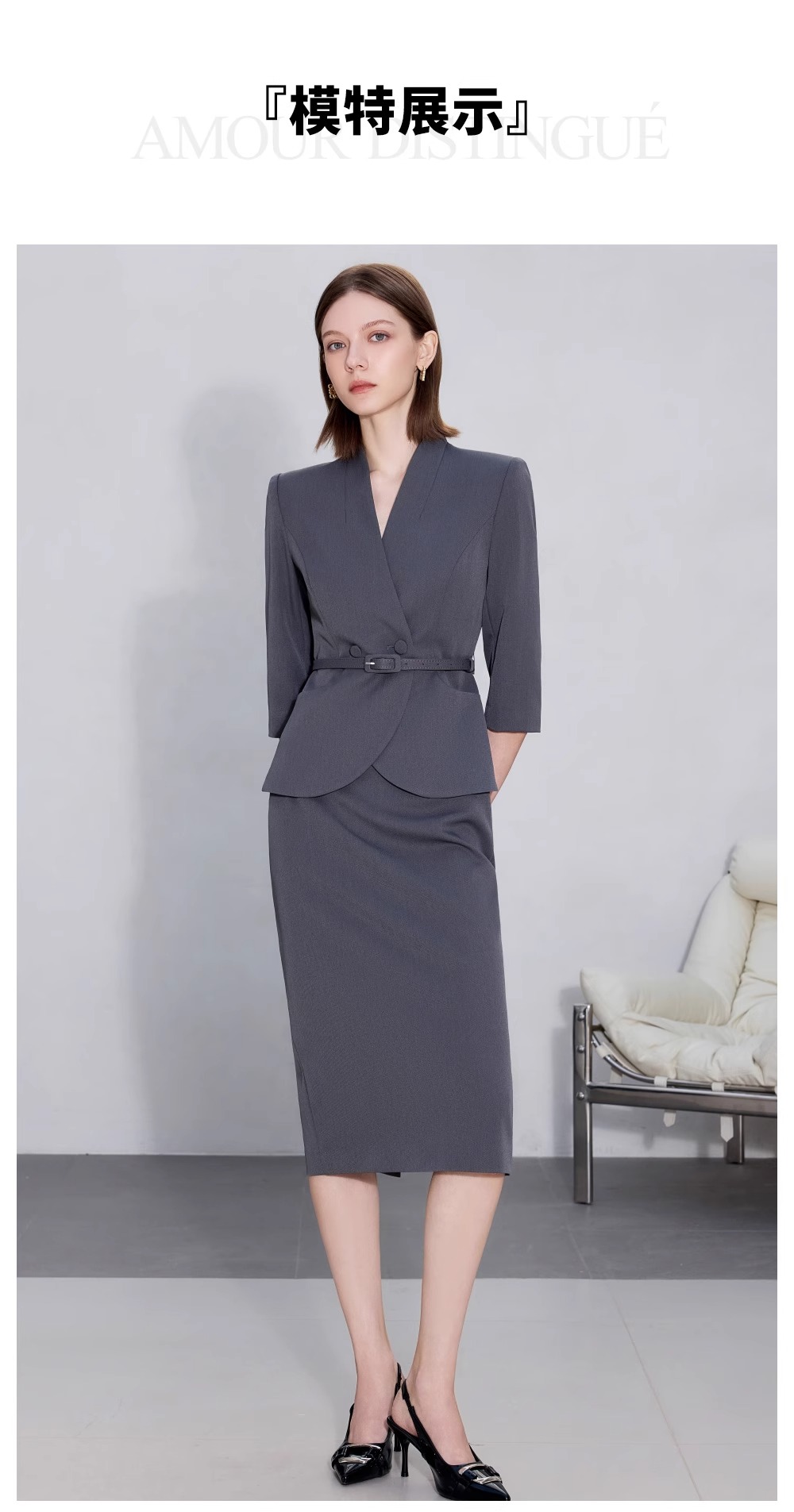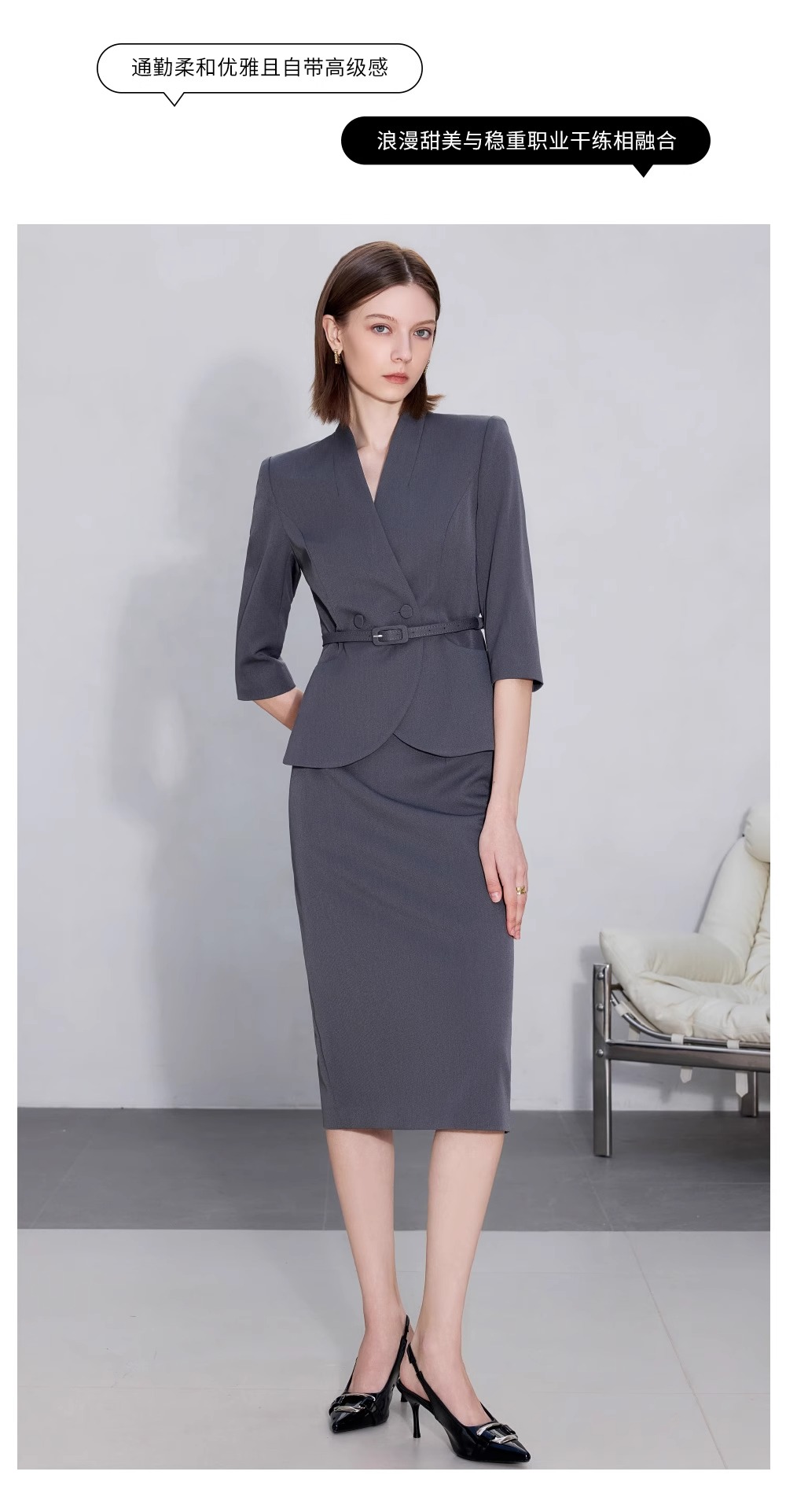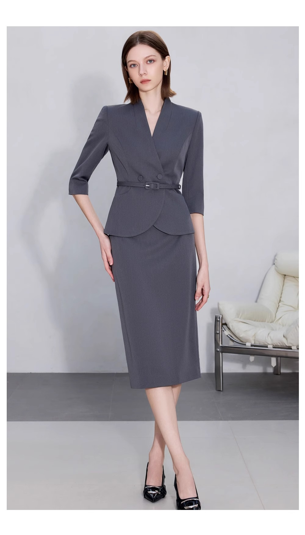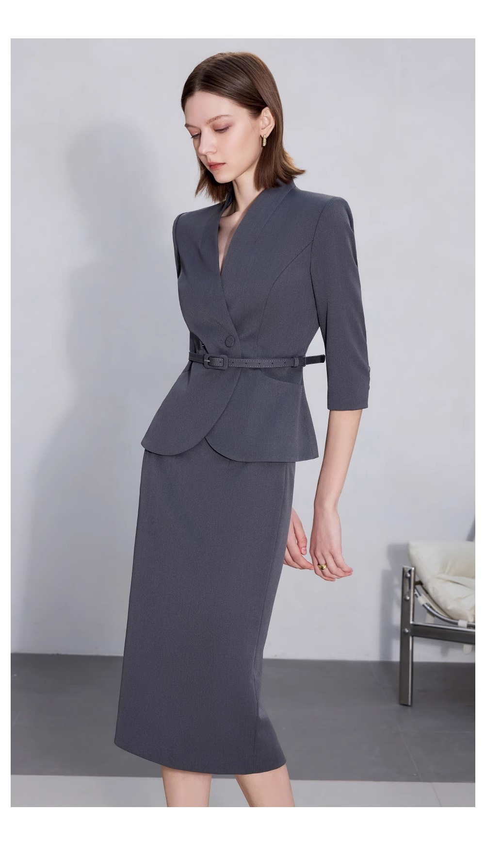 IWY/高级感灰色西装套装职场两件套新款七分袖工作服正装裙CS2252