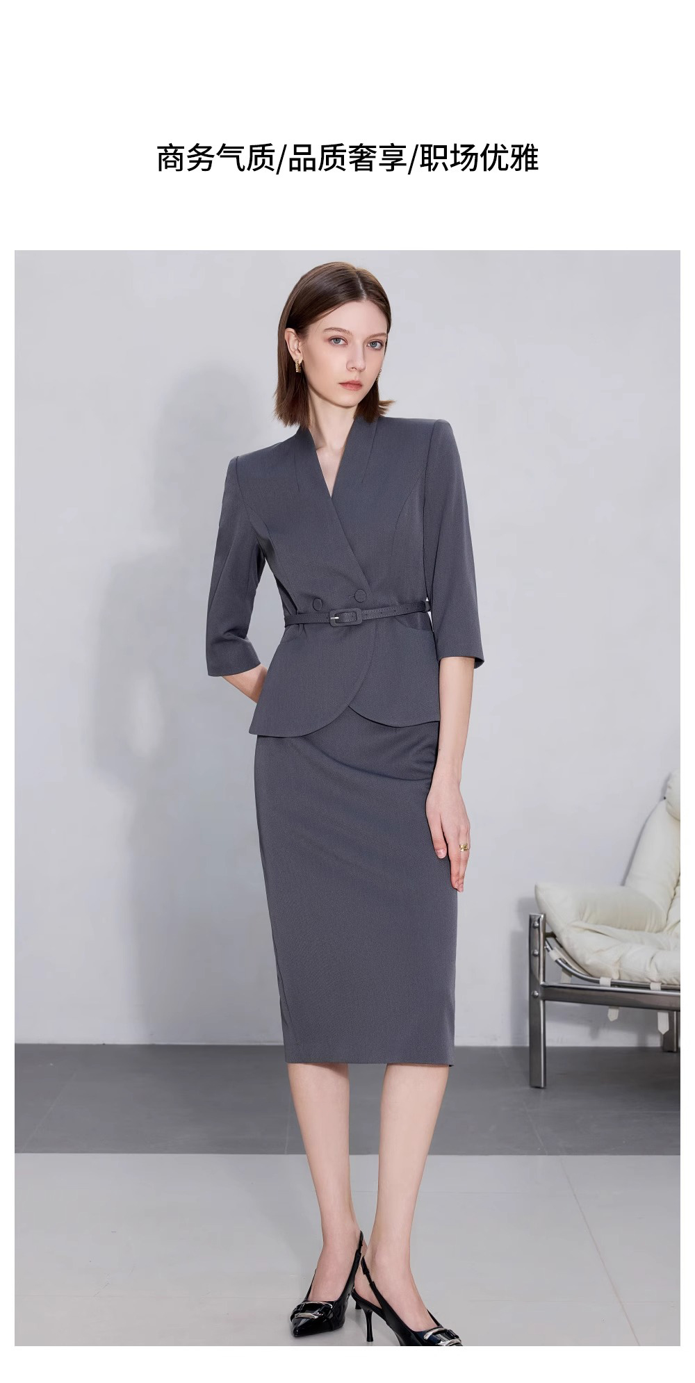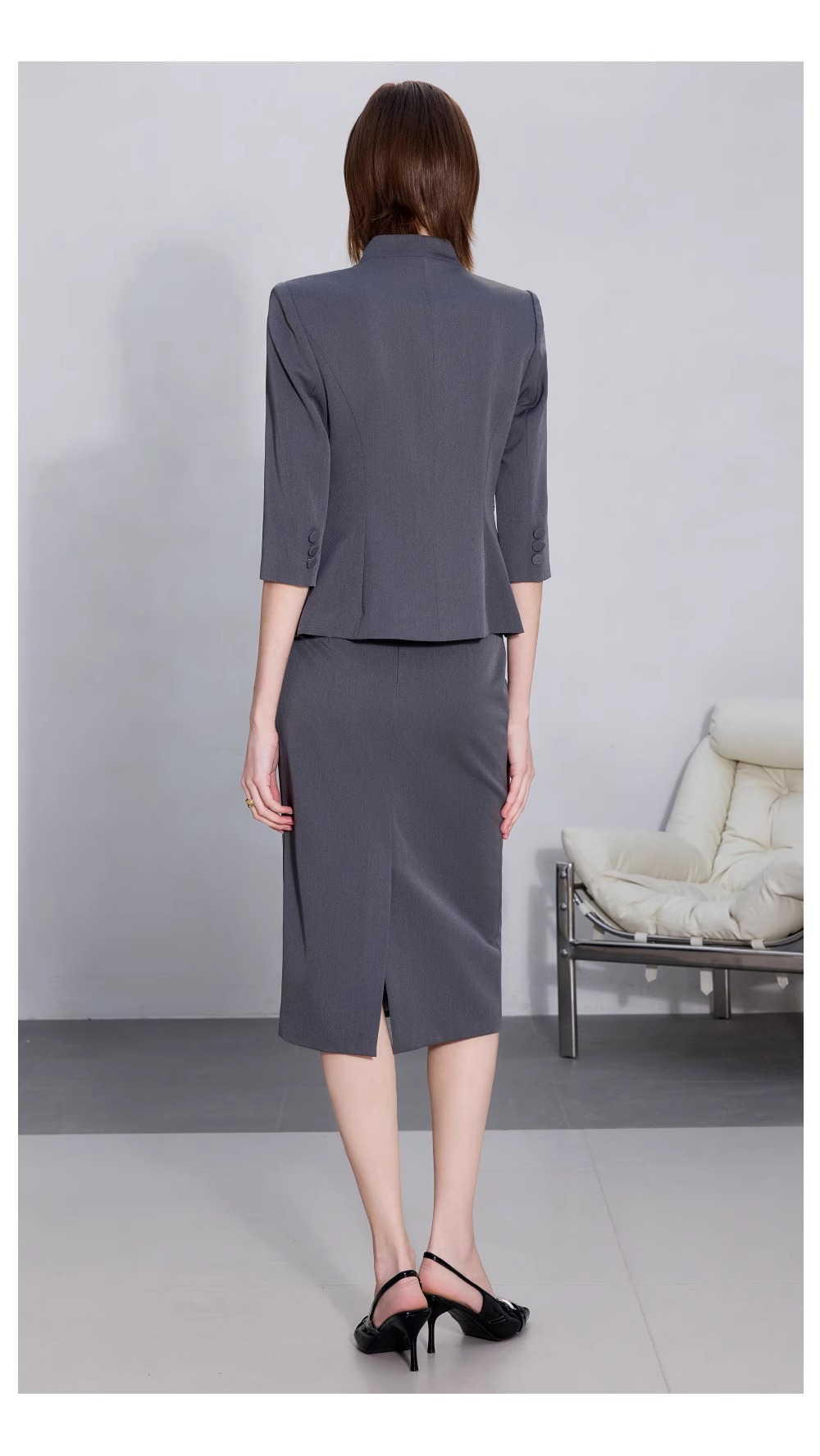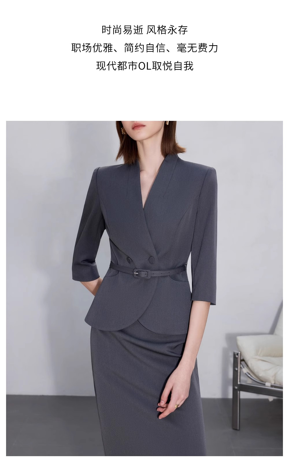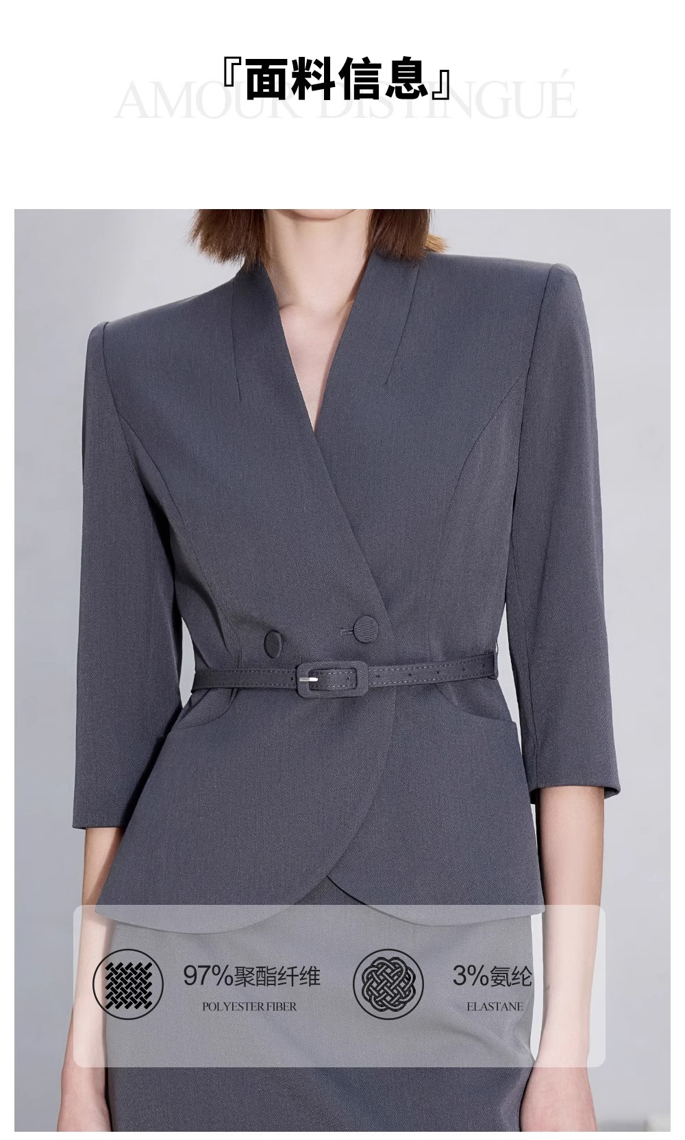 IWY/高级感灰色西装套装职场两件套新款七分袖工作服正装裙CS2252