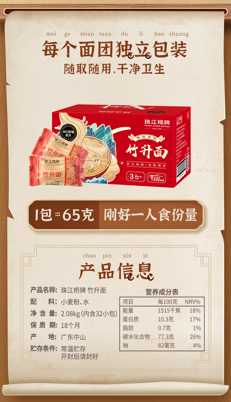 珠江桥牌 竹升面2.08kg(32小包)