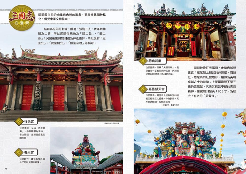 特色3:不僅探訪中國境內的三國遺跡,針對臺灣關帝廟和世界其他與三國相關的景點亦提供導覽,拉近讀者與三國的距離;另介紹「群雄使用的武器」和「三國相關的成語典故」,將課外讀物與課本知識做結合,發展並提升核心素養。