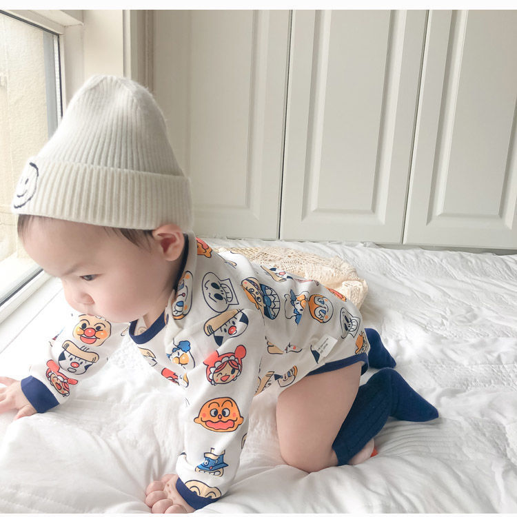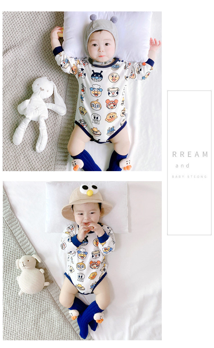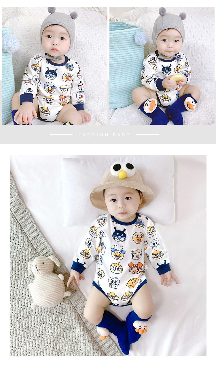 新生男婴儿面包超人女宝宝春秋棉连体衣长袖三角包屁哈衣爬爬服
