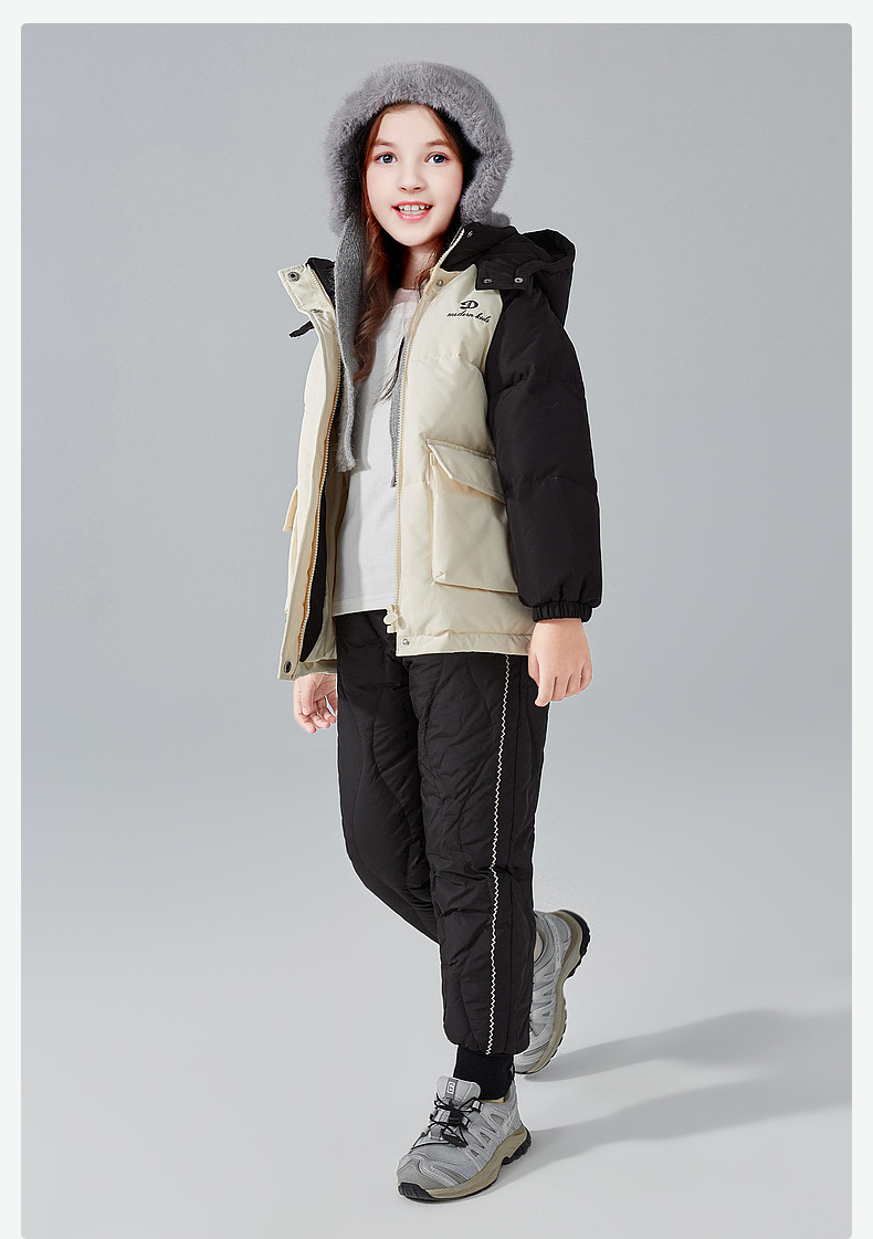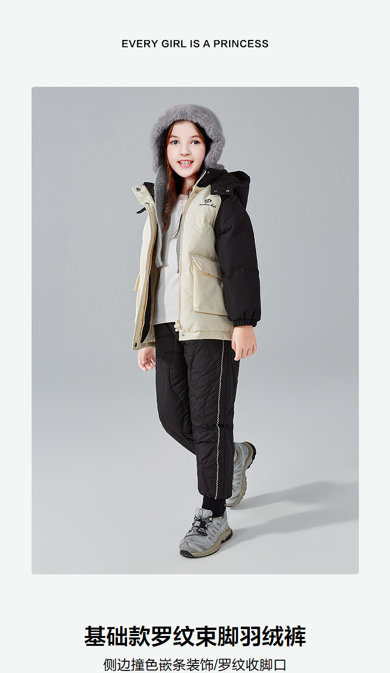 笛莎女童裤子2024冬季新款基础款罗纹束脚羽绒裤