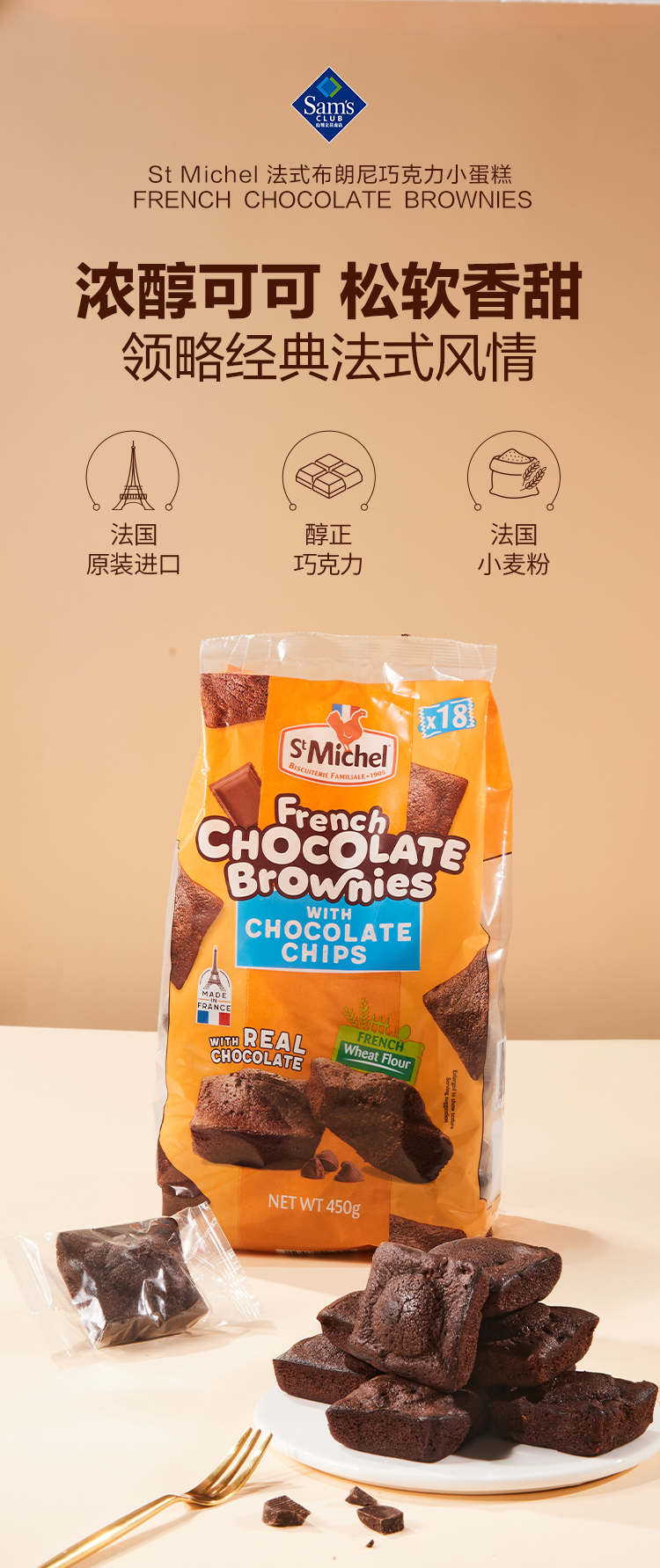 【自提】M St Michel 法国进口 法式布朗尼巧克力小蛋糕 450g(18包)