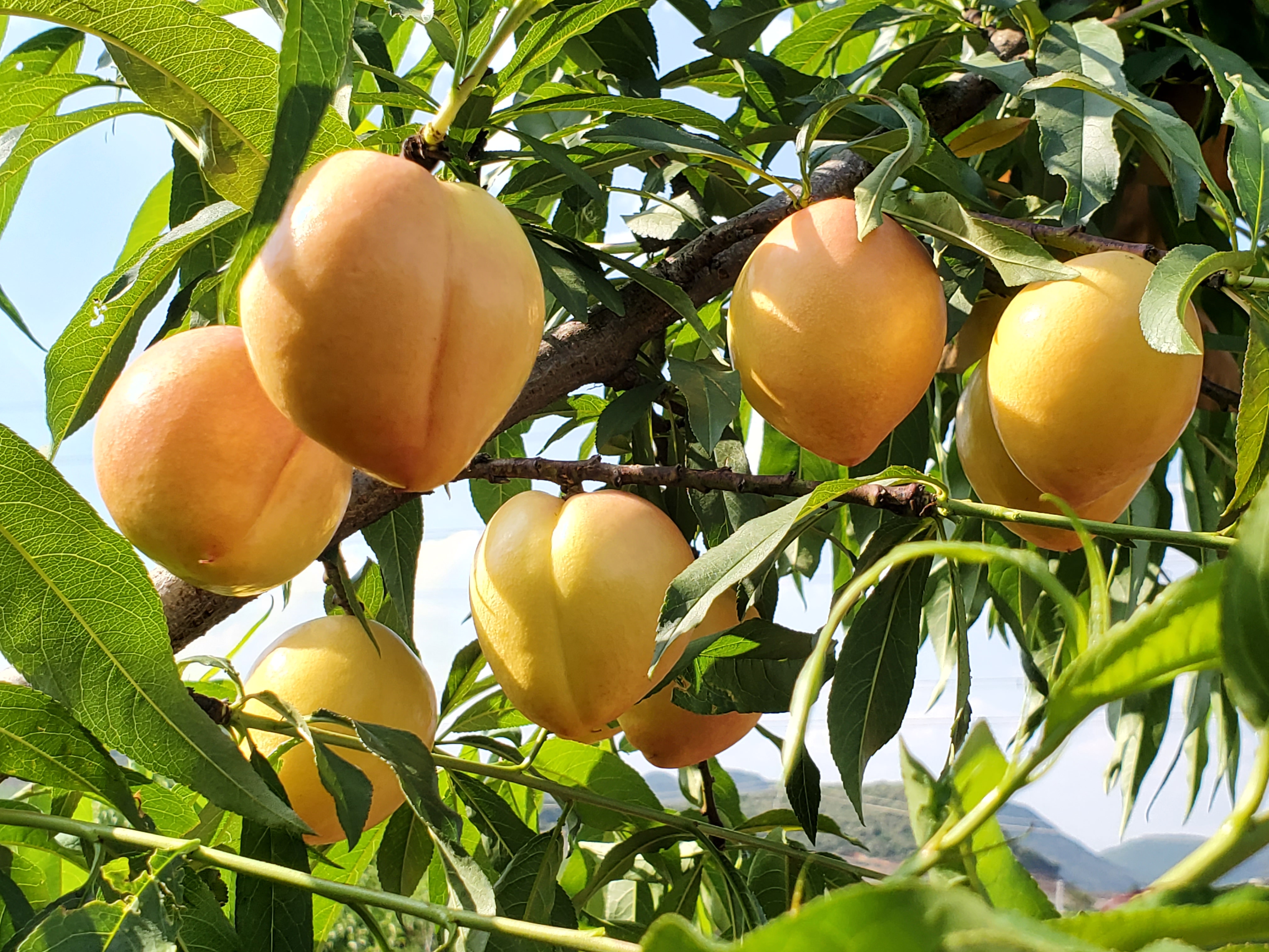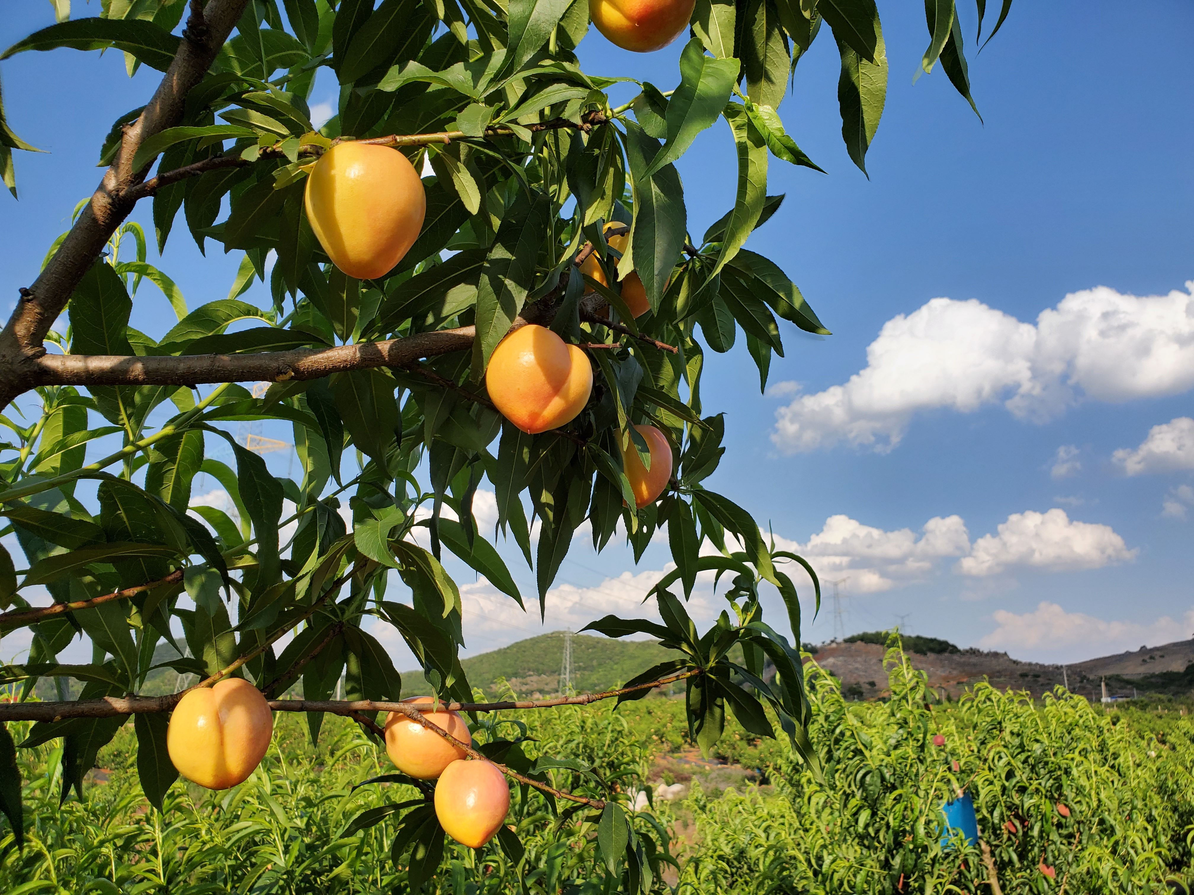 比初恋更甜的是挂在枝头的山地黄油桃,汁多味甜,香甜爽口,轻咬一口都是蜜,均果甜度不低于15度,啧啧,初恋突然都不香了!