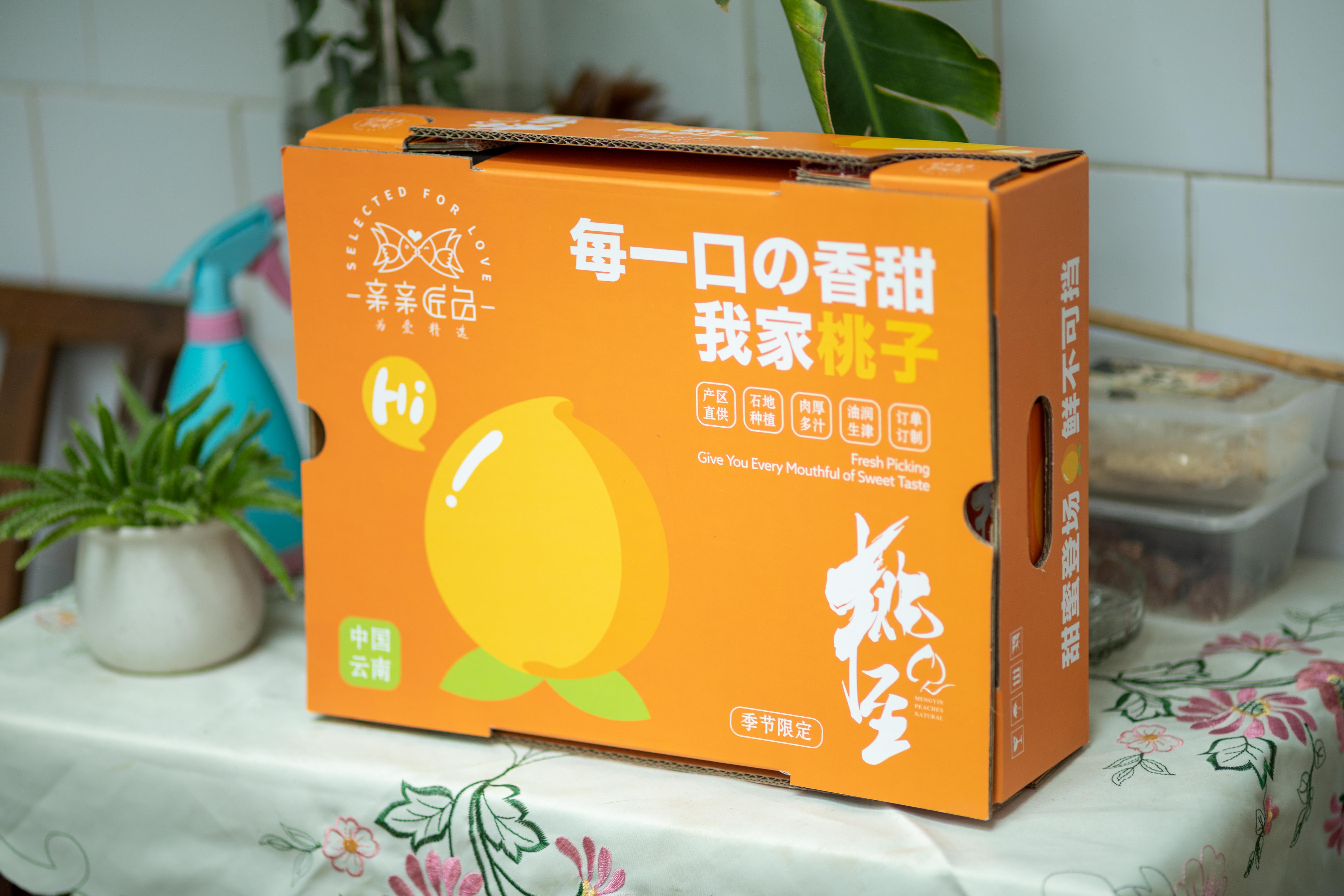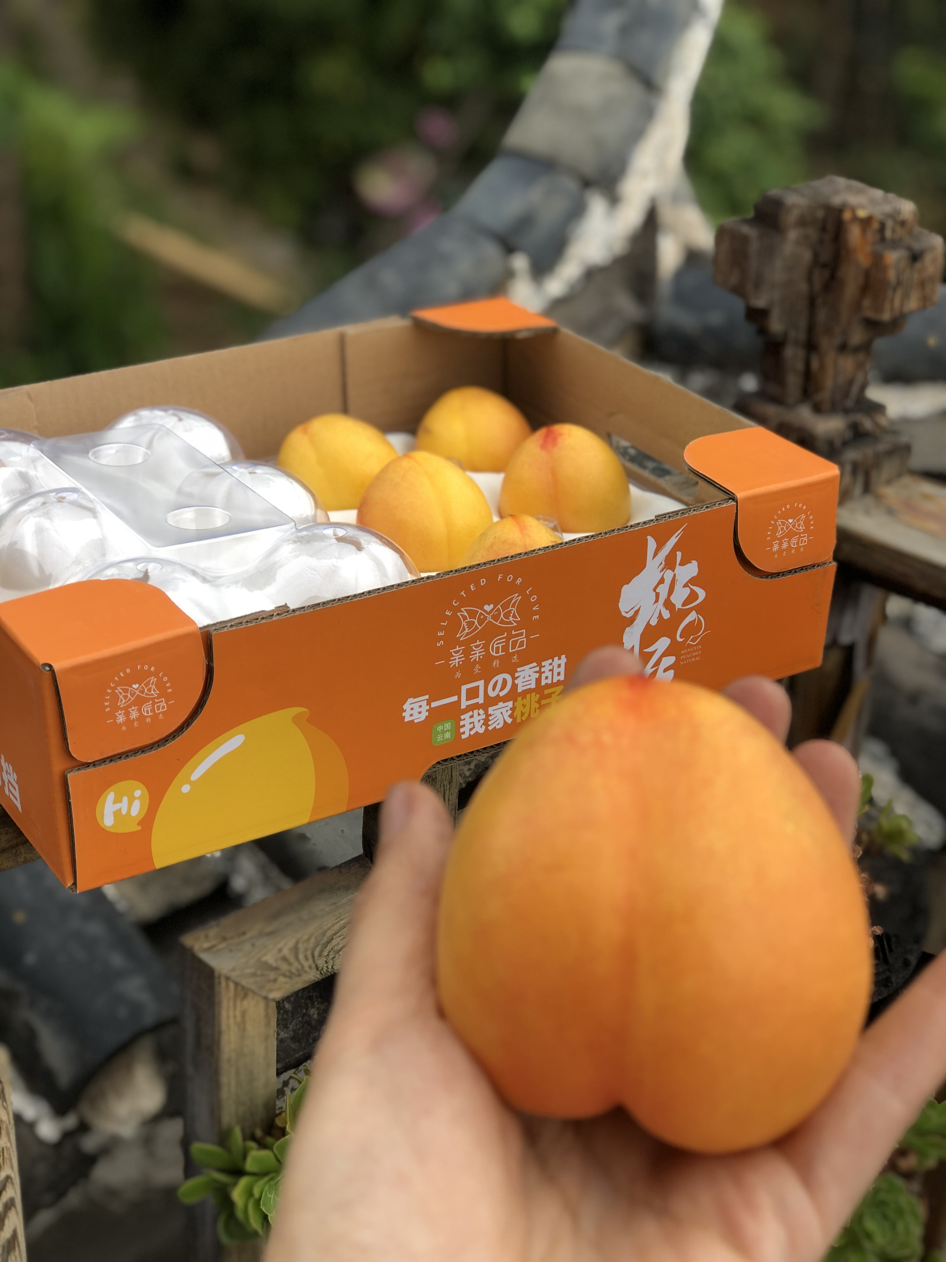 为了避免桃子在物流运输过程中碰撞受损,3斤装的桃子使用特别订制的模具将中
