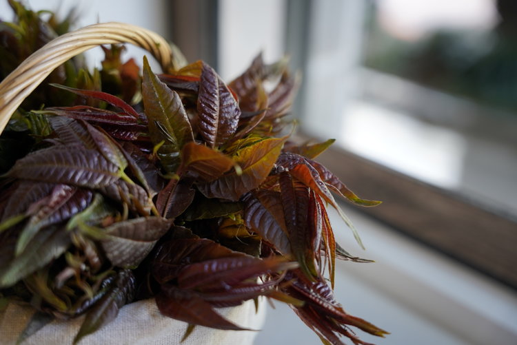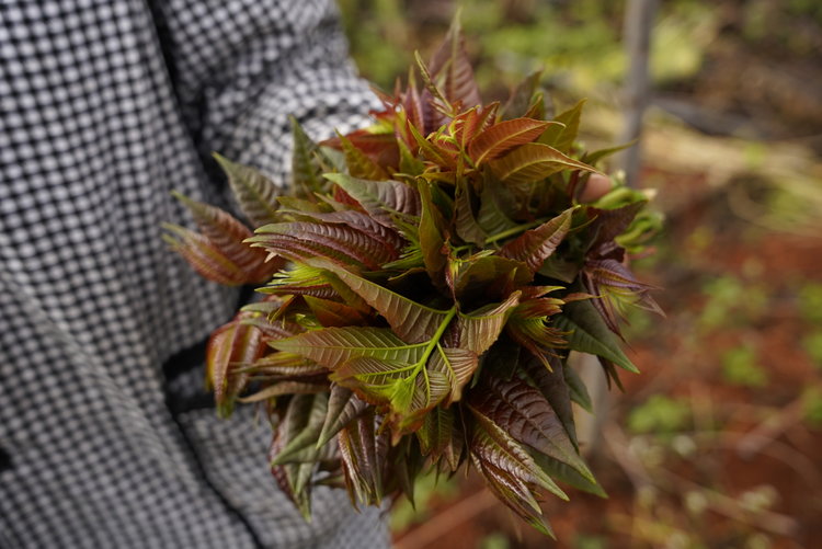 采下那些毛绒绒的香椿嫩芽,裹上面糊炸制成酥酥脆脆的炸香椿,或者磕入一个鸡蛋炒成一盘香喷喷的香椿炒鸡蛋,或者干脆撒上一把盐粒,揉一揉放进坛子里腌制,可以吃到来年春天。