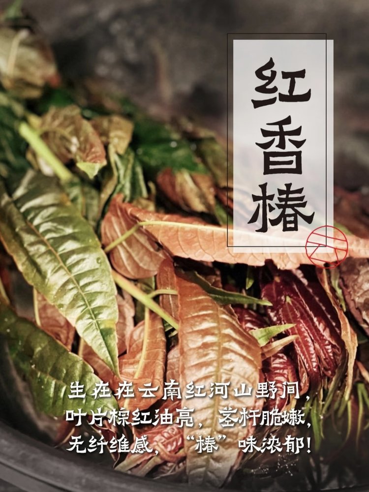 香椿是一种珍稀佳肴,被称为“树上蔬菜”,是香椿树的嫩芽。民间有“门前一树椿,春菜不担心”的说法。香椿的珍贵,自古有之。中国自汉代开始品尝香椿,到清代便形成了“吃椿”的传统,意为辞旧迎新,享受美好的春天。