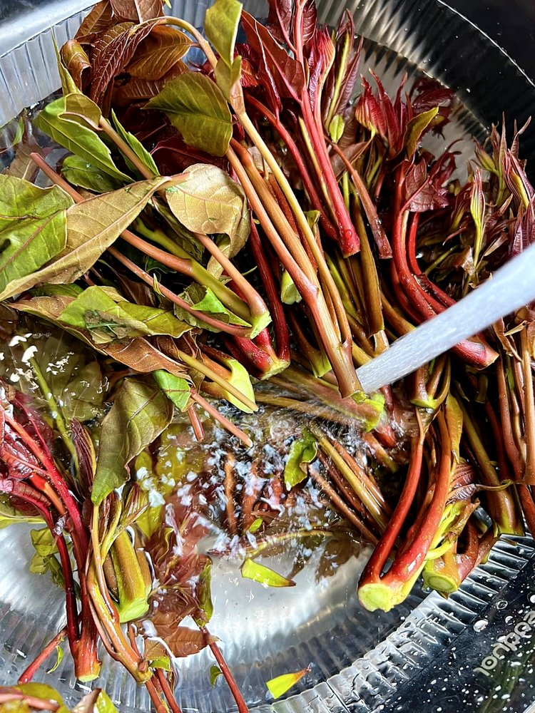 我们的椿采的都是头茬椿!尤其是在冬季能够吃到新鲜又有香气的椿极其不容易!采椿的姐姐介绍来,每批都只采嫩芽!并且天不亮就得采,害怕晚采椿就老了!一颗树采完一批椿,需要等十五至二十天才能再采下一批椿!并且还需要预防下霜,如果下霜的话这个椿就采不了了!所以这个季节的露天香椿每一个都来之不易!且吃且珍惜!