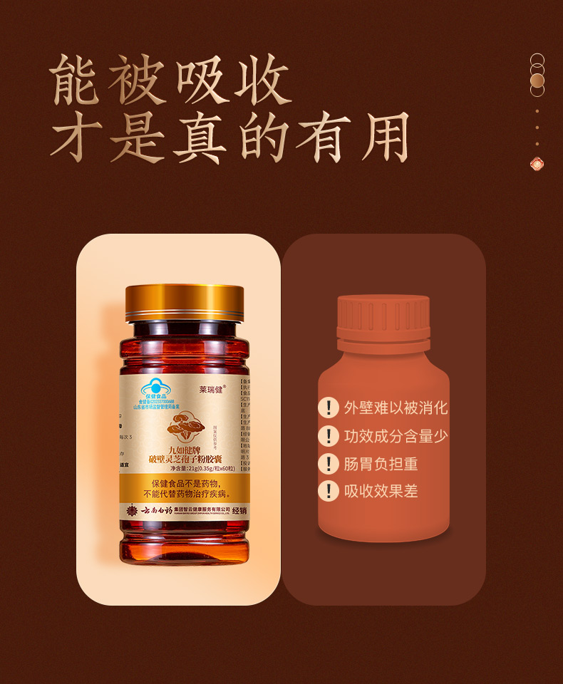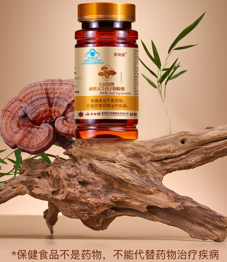 【官方正品】云南白药经销九如健牌破壁灵芝孢子粉胶囊0.35g*60粒高破壁率增强免疫力含灵芝三萜12%