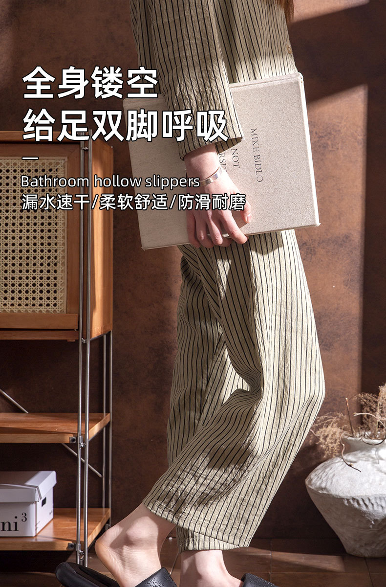 【全身镂空!给足双脚呼吸】浴室拖鞋女夏季新款室内家居厚底防滑镂空速干洗澡漏水凉拖鞋男士。ry