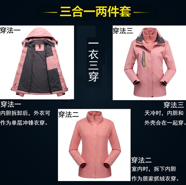 冬季户外防水冲锋衣男女款可拆卸两件套三合一防风防寒登山服外套