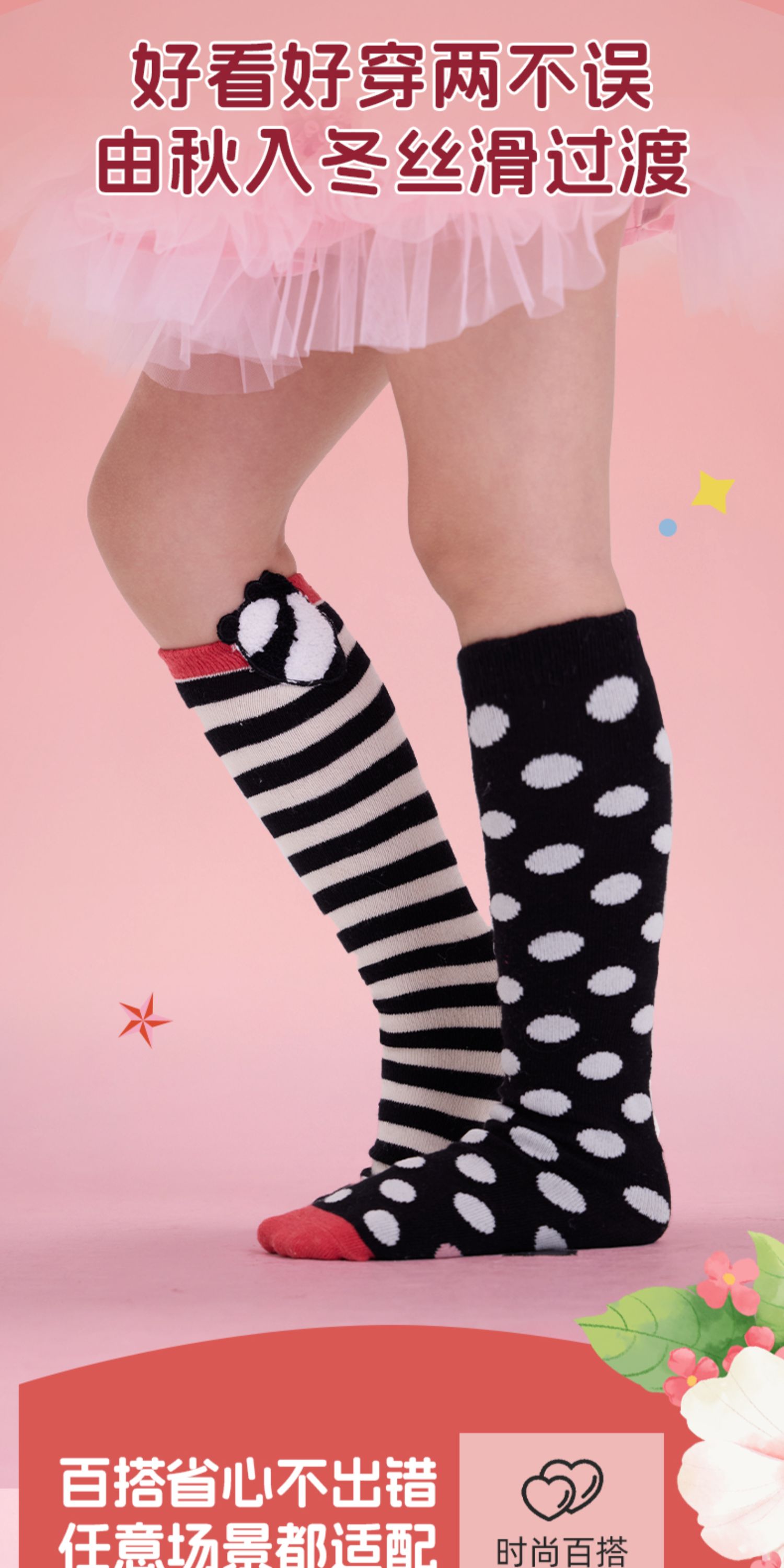 【盼达啵啵袜子】年衣儿童袜子男女童秋冬新款条纹宝宝撞色中筒袜