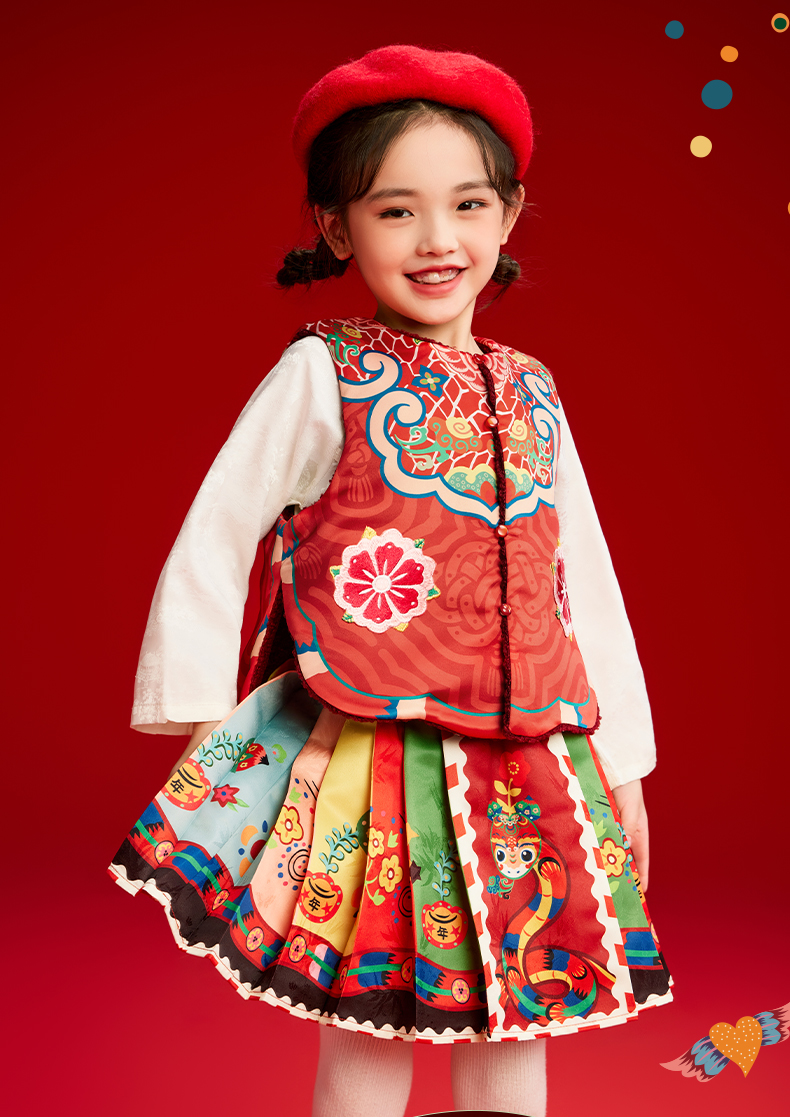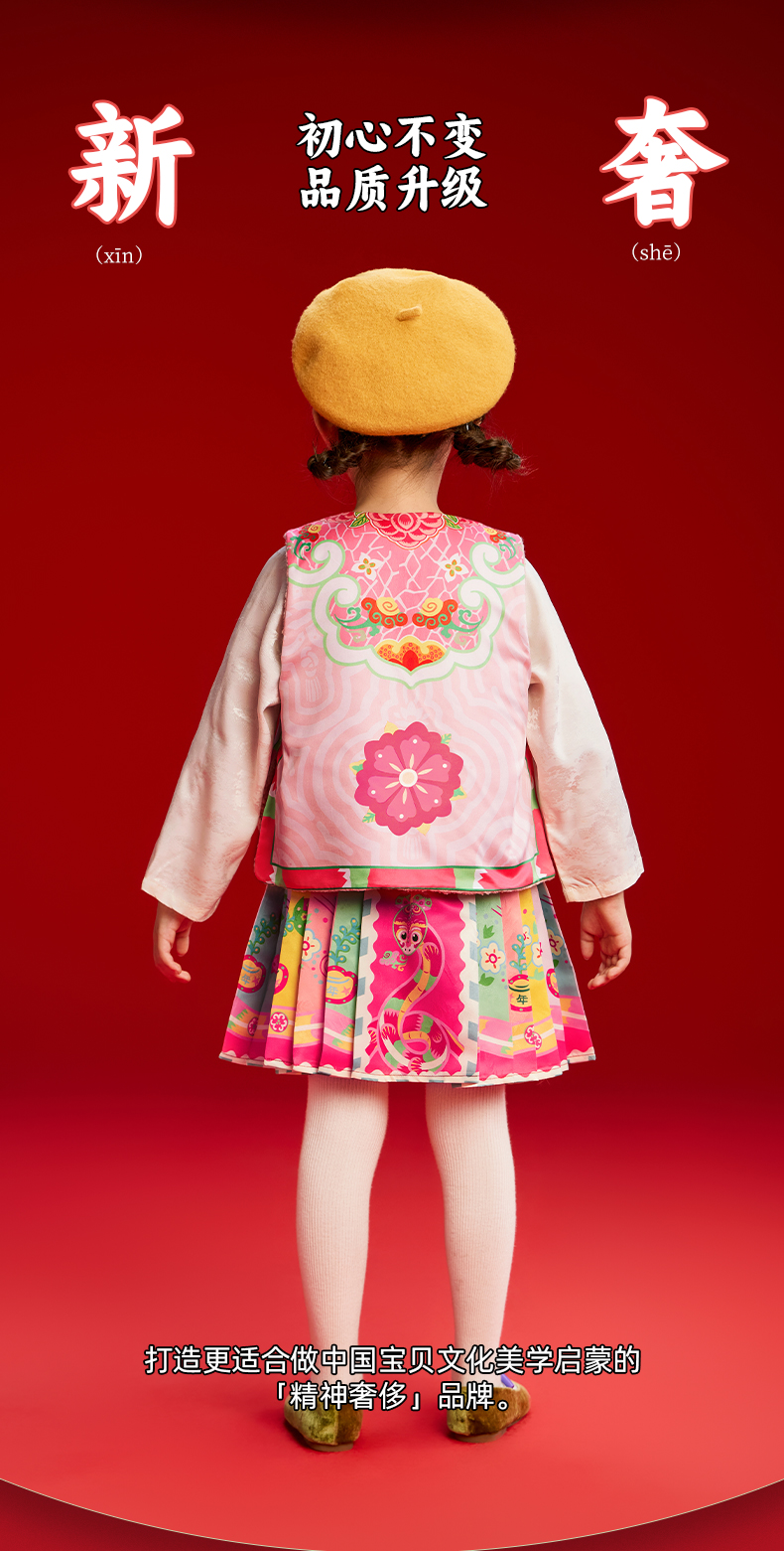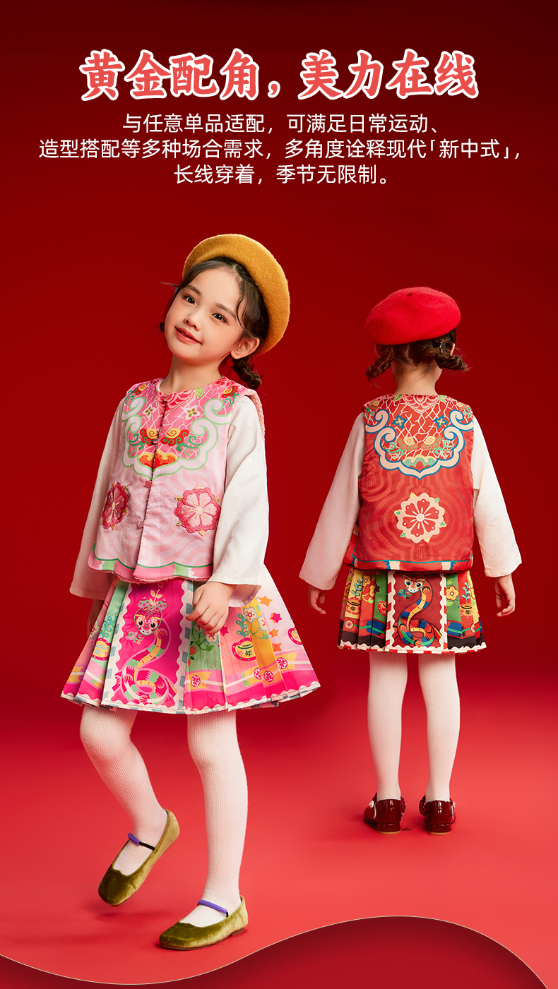 年衣童装女童马甲加绒冬装新款国风新中式儿童坎肩外出马夹拜年服有财华中式马甲/有财华短马面裙