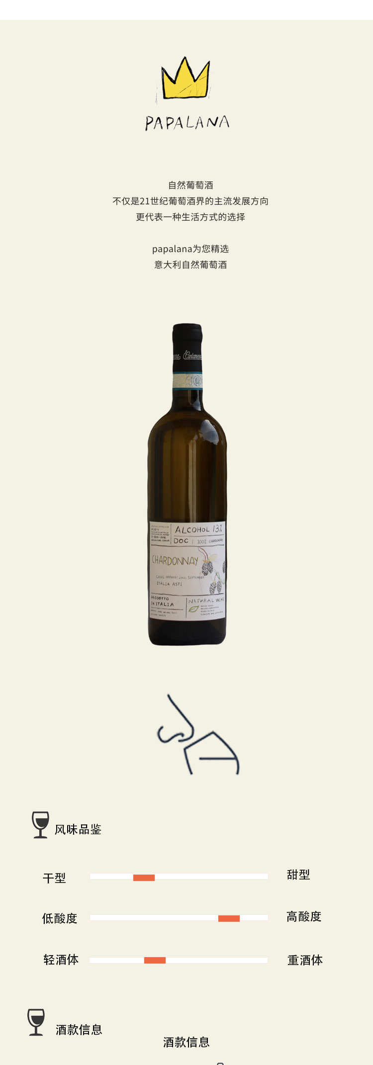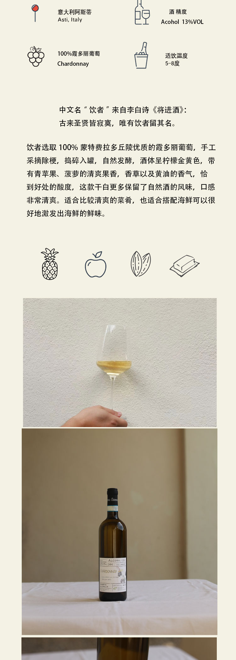 「饮者」霞多丽干白葡萄酒/有机自然酒750ml|意大利【Y】