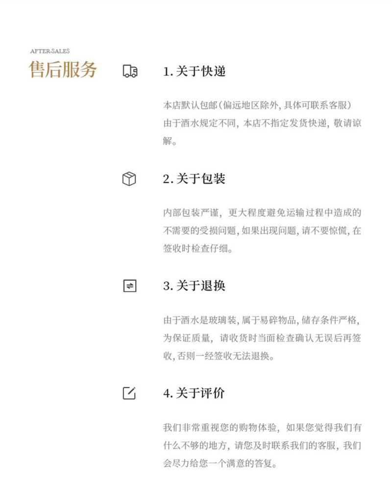 1.酒类特殊,无品质问题不支持7天无理由退换货请谅解。