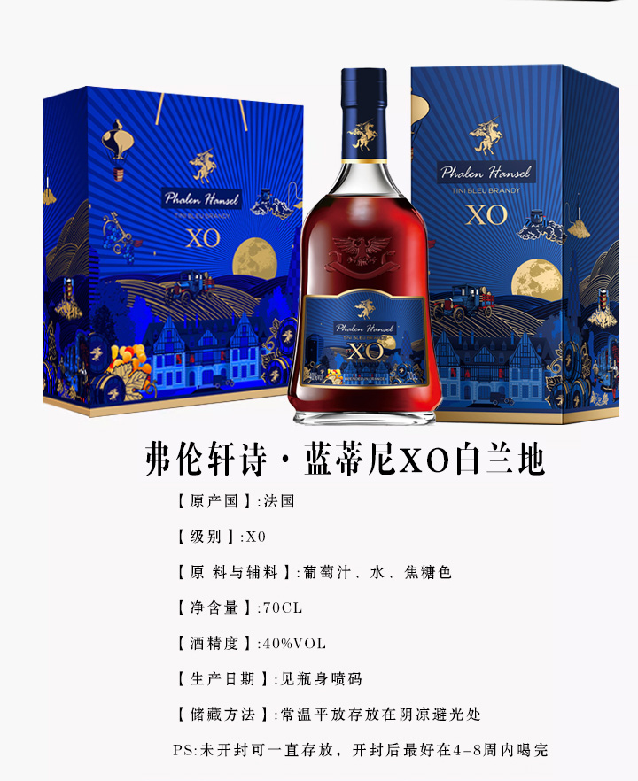 弗伦轩诗·蓝蒂尼XO白兰地700ml(40%vol) ,法国进口,百年酒庄,带“飞鹰标”,橡木桶10年陈酿造