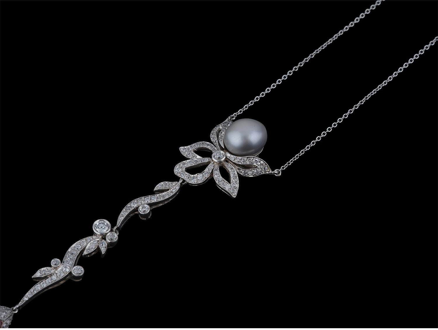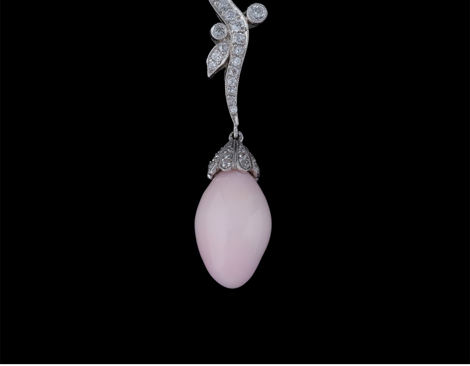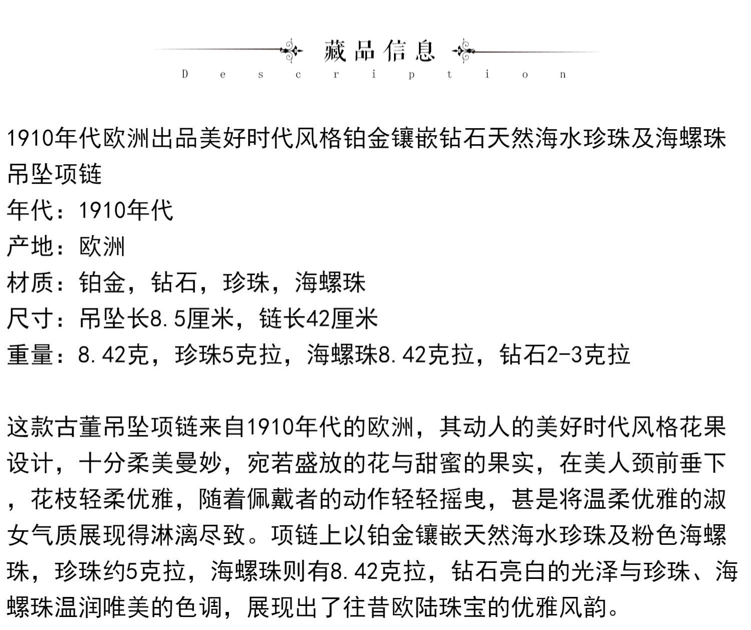 独角鹿西洋古董美好时代铂金镶钻石天然海水珍珠海螺珠吊坠项链
