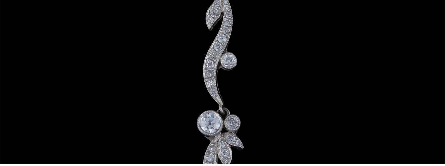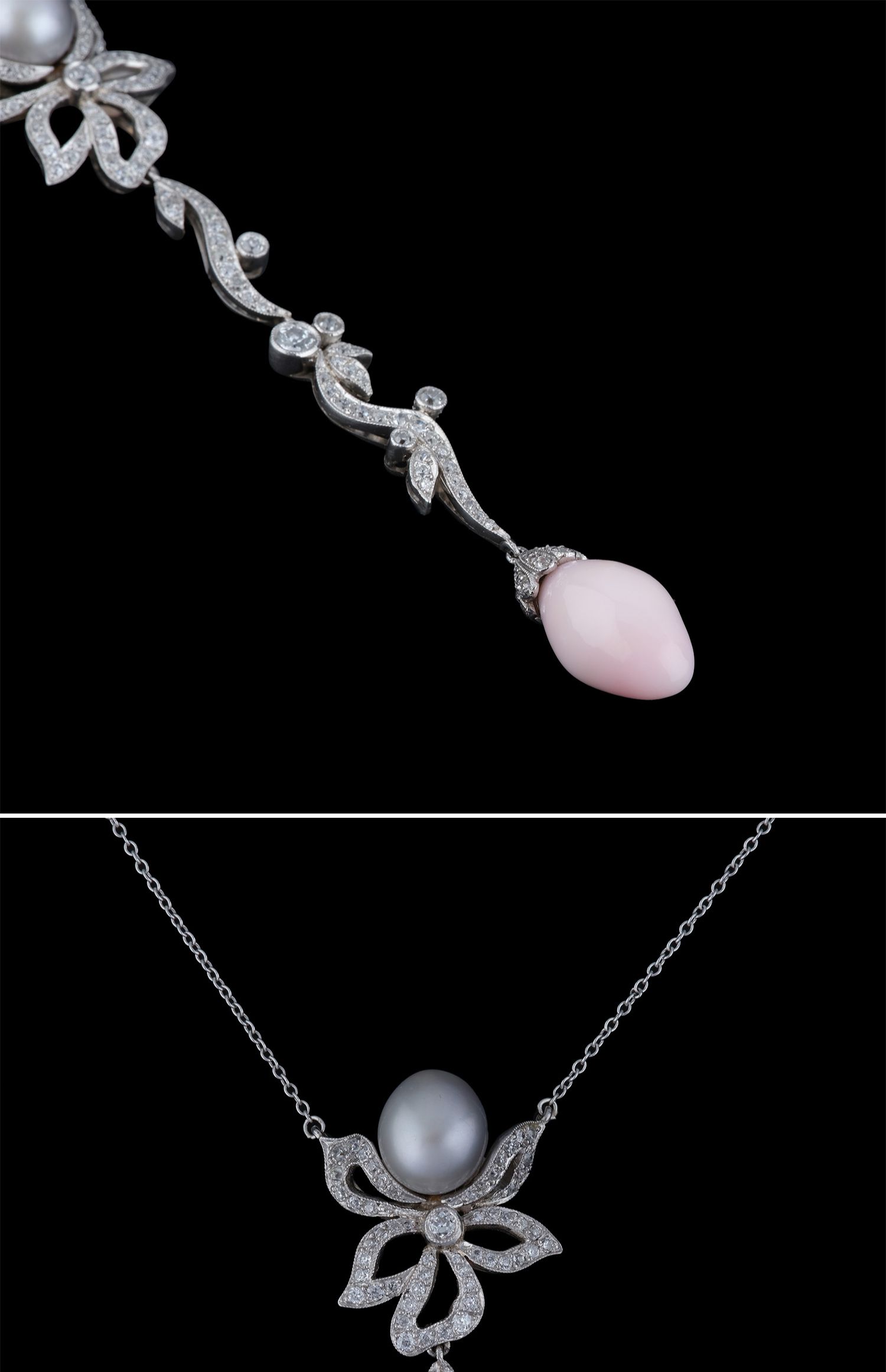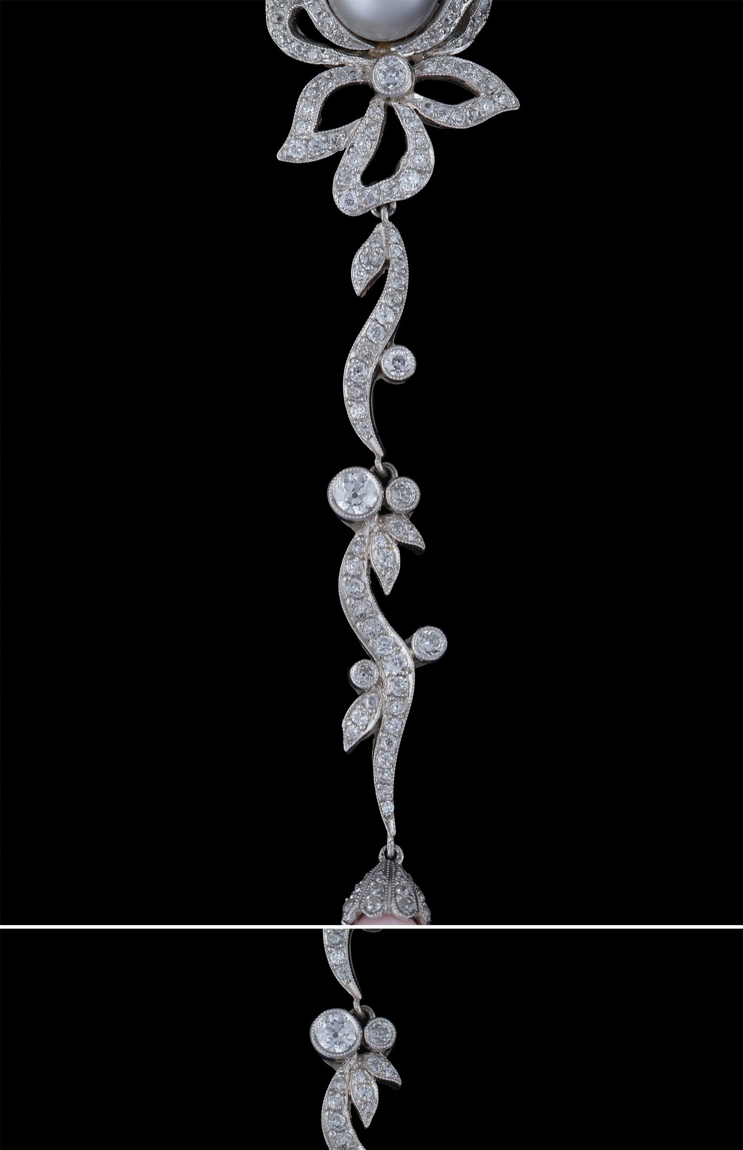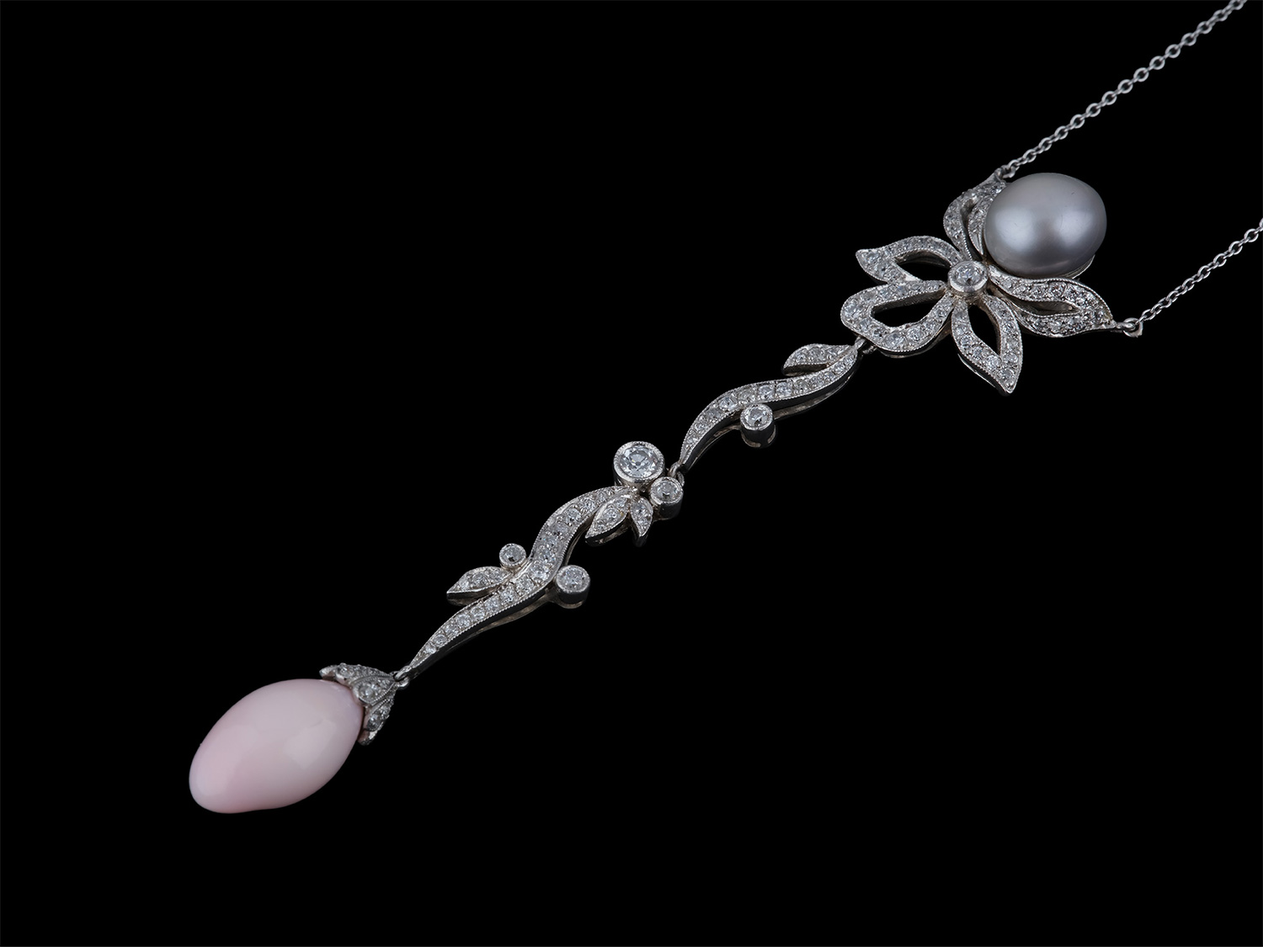 独角鹿西洋古董美好时代铂金镶钻石天然海水珍珠海螺珠吊坠项链