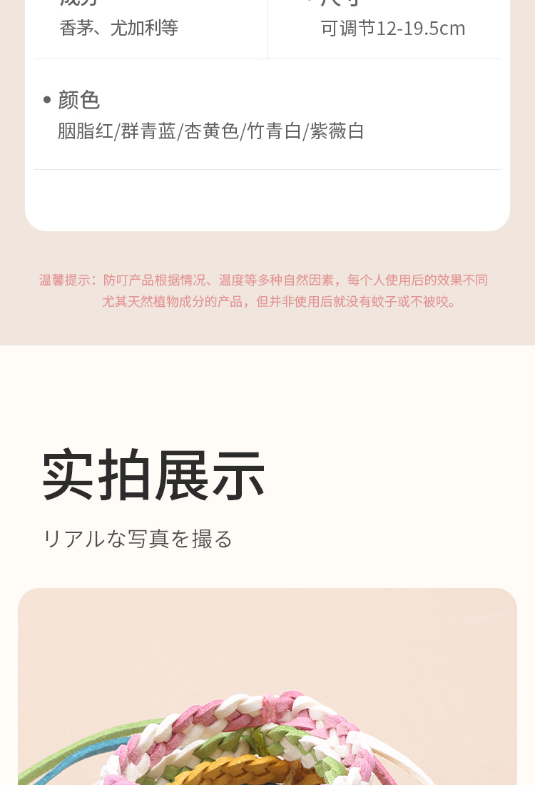 随机5个特惠装!【长效防护 可达20-30天】日本驱蚊神器防蚊手环植物精油手绳少女手链手环户外儿童成人男士