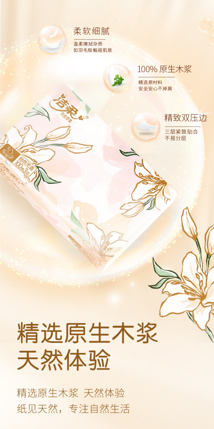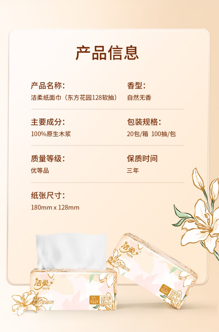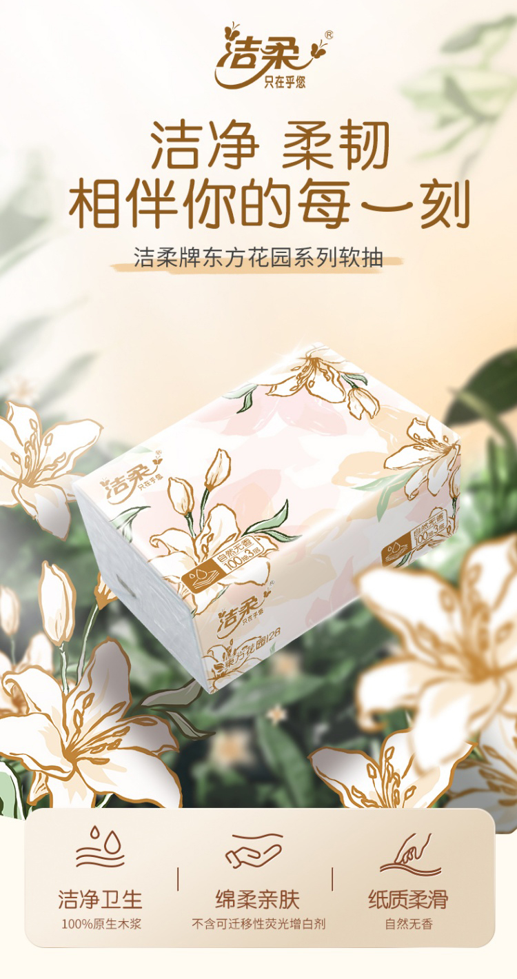 洁柔 纸面巾(繁花系列柔韧)100抽3层(20包装)