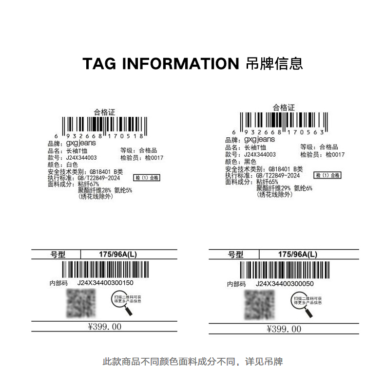 gxg.jeans男装冬季热卖长袖T恤J24X344003