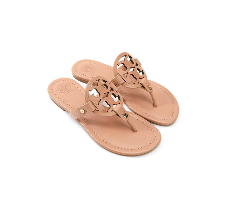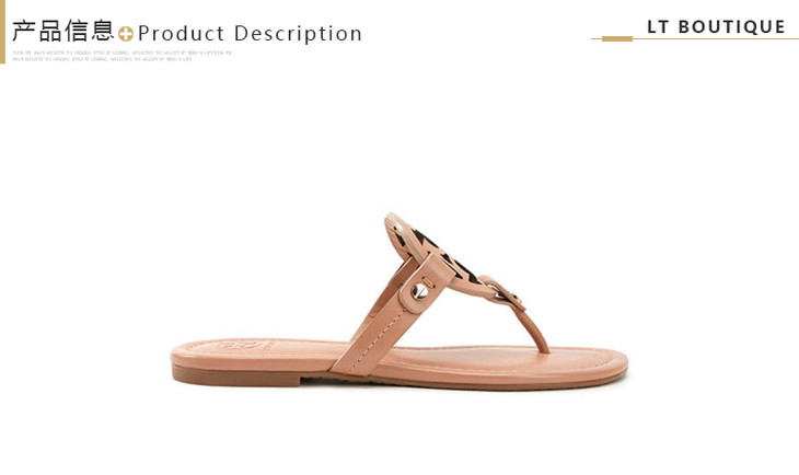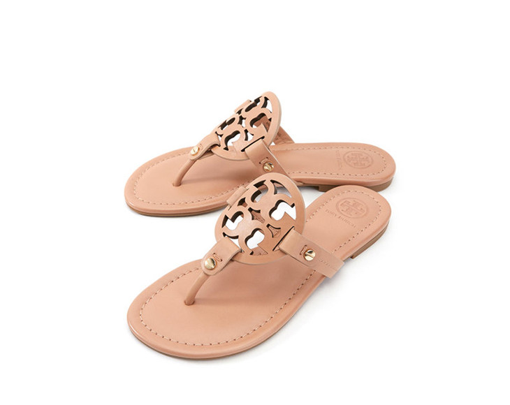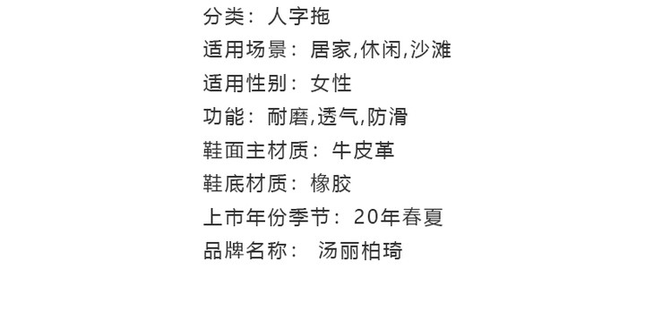 Tory Burch 汤丽柏琦 春夏新款 TB 女士卡其色皮革LOGO人字拖凉鞋沙滩鞋女鞋 杏色 21168647 214