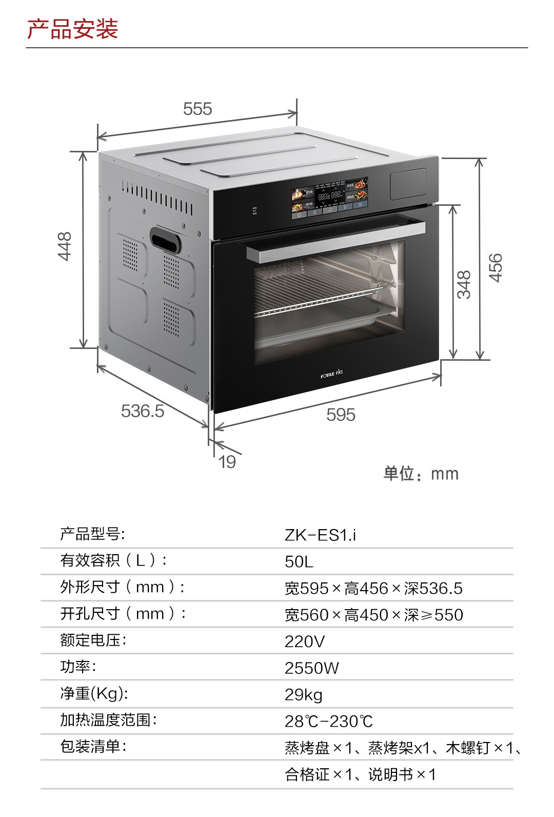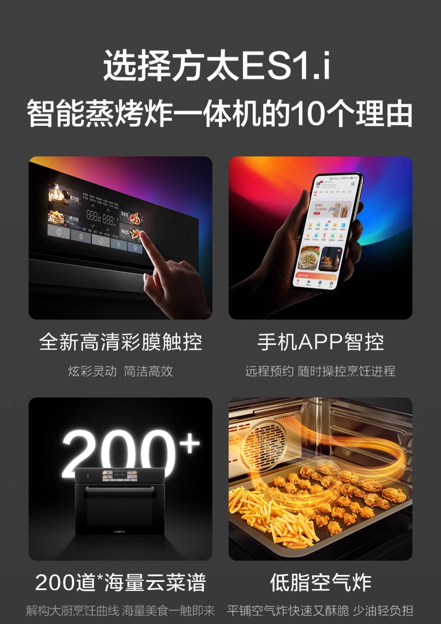 方太ES1.i嵌入式蒸烤炸一体机 蒸烤箱家用烘焙多功能 智能电蒸烤箱55L豪华大容量蒸箱烤箱二合一官方正品