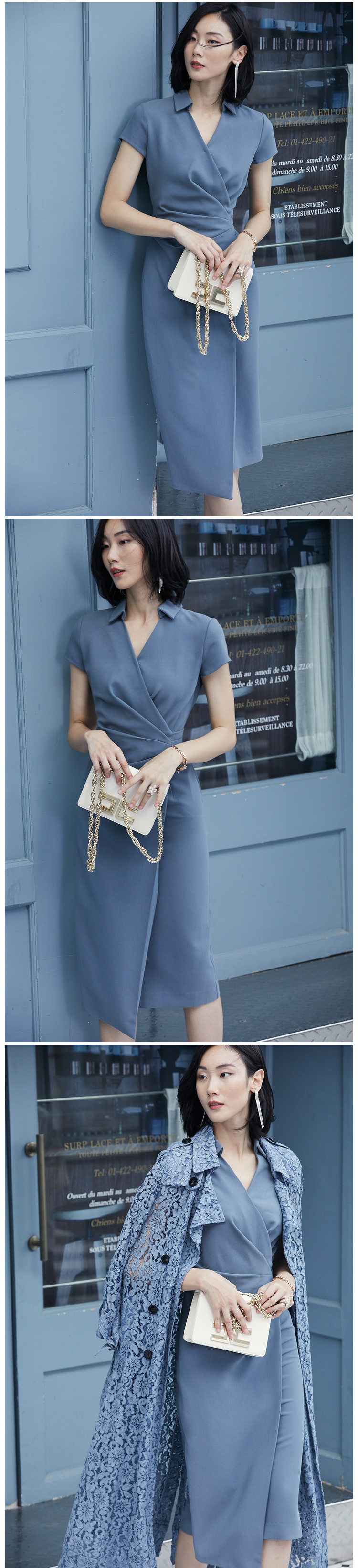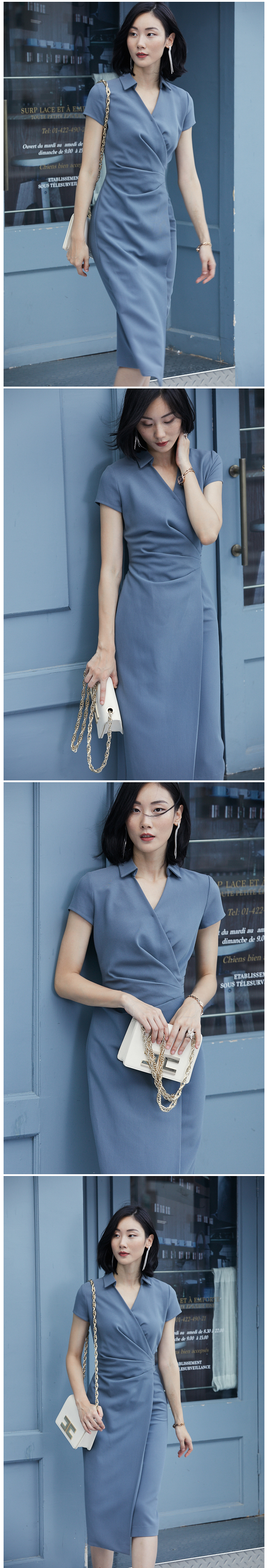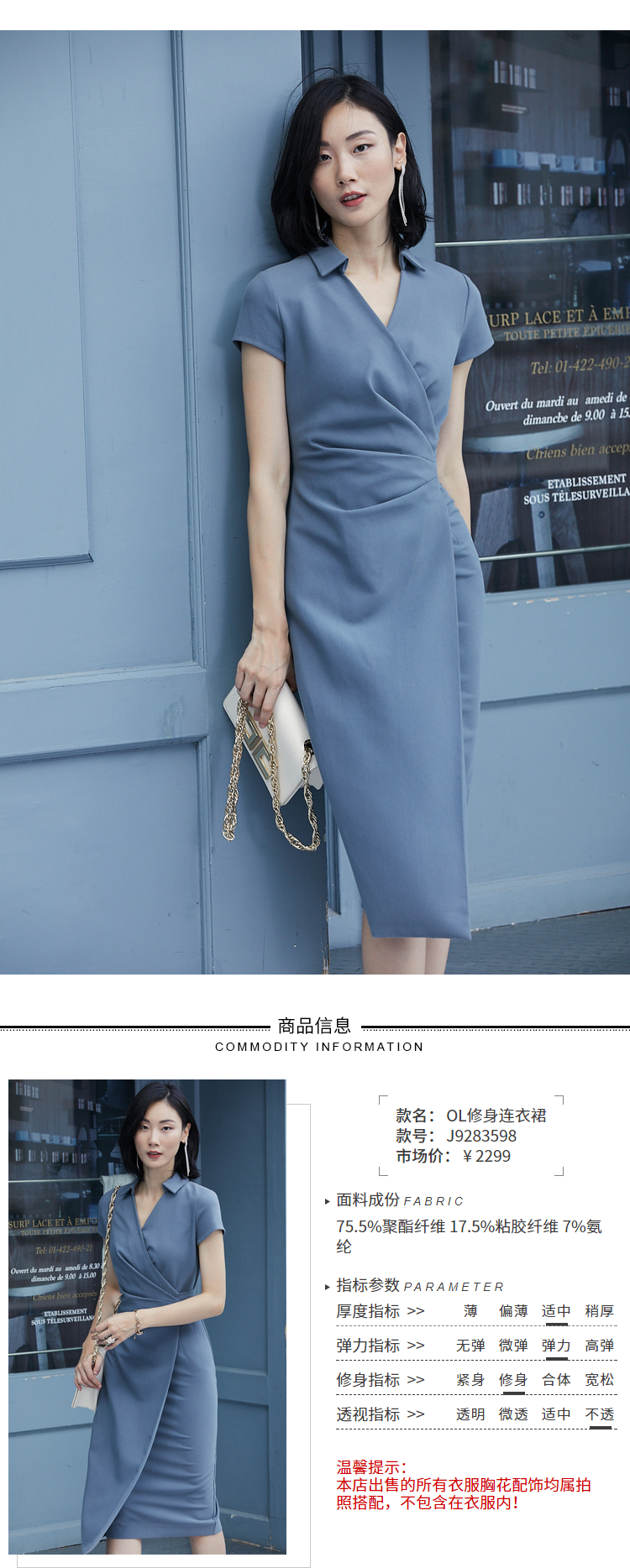 孤品 J9283598颈袖添香夏季新款OL时尚修身中长款包臀显瘦女士职业连衣裙不退可换