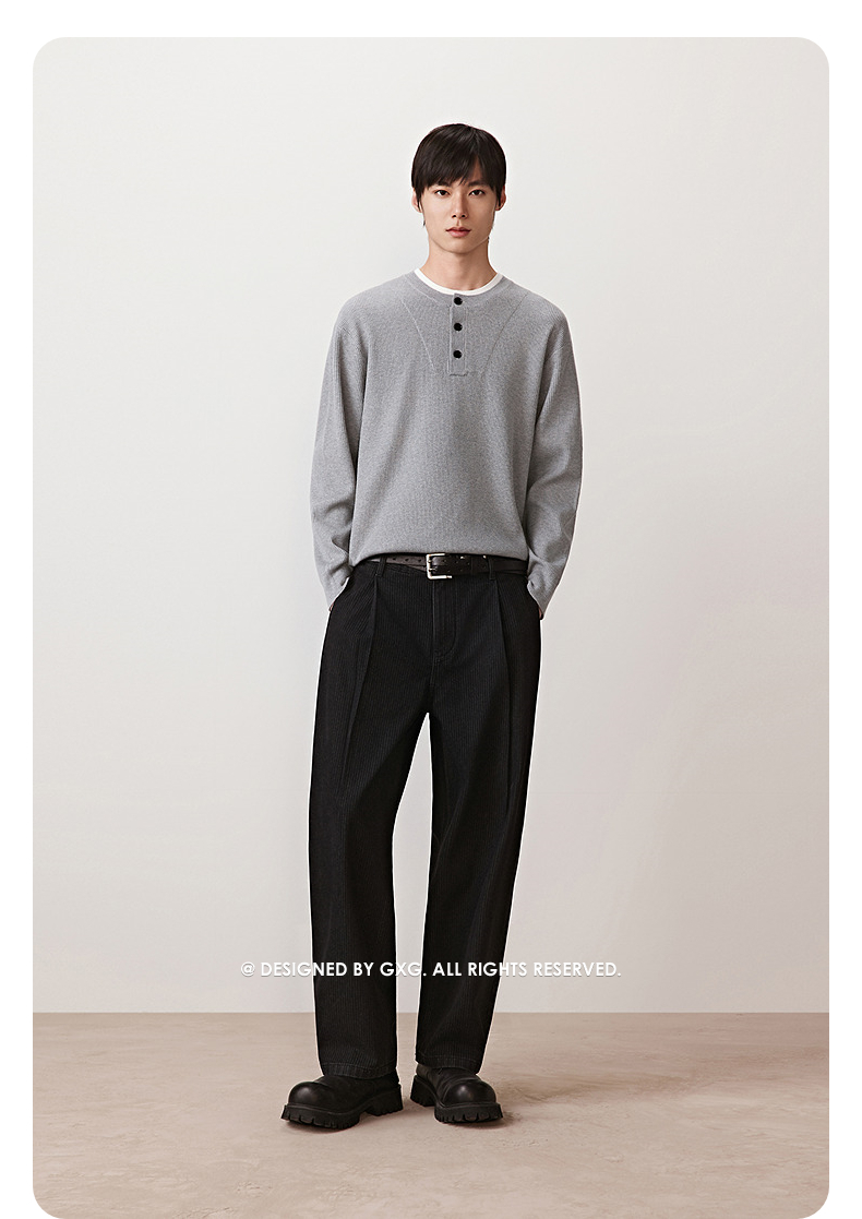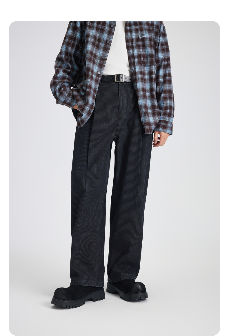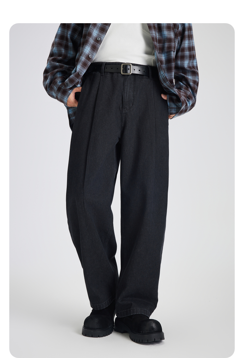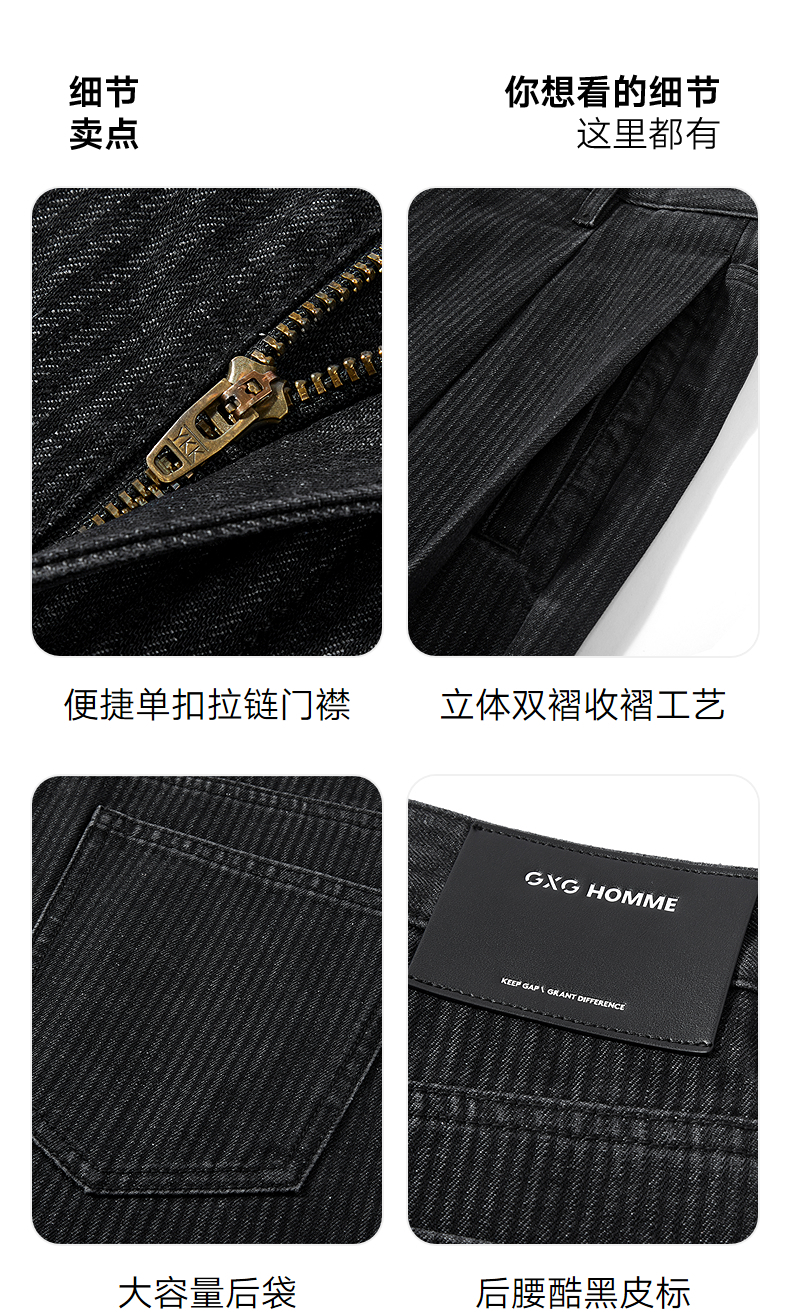 GXG男装 定织竖条肌理宽松直筒阔腿擦色牛仔裤 2025秋季新品