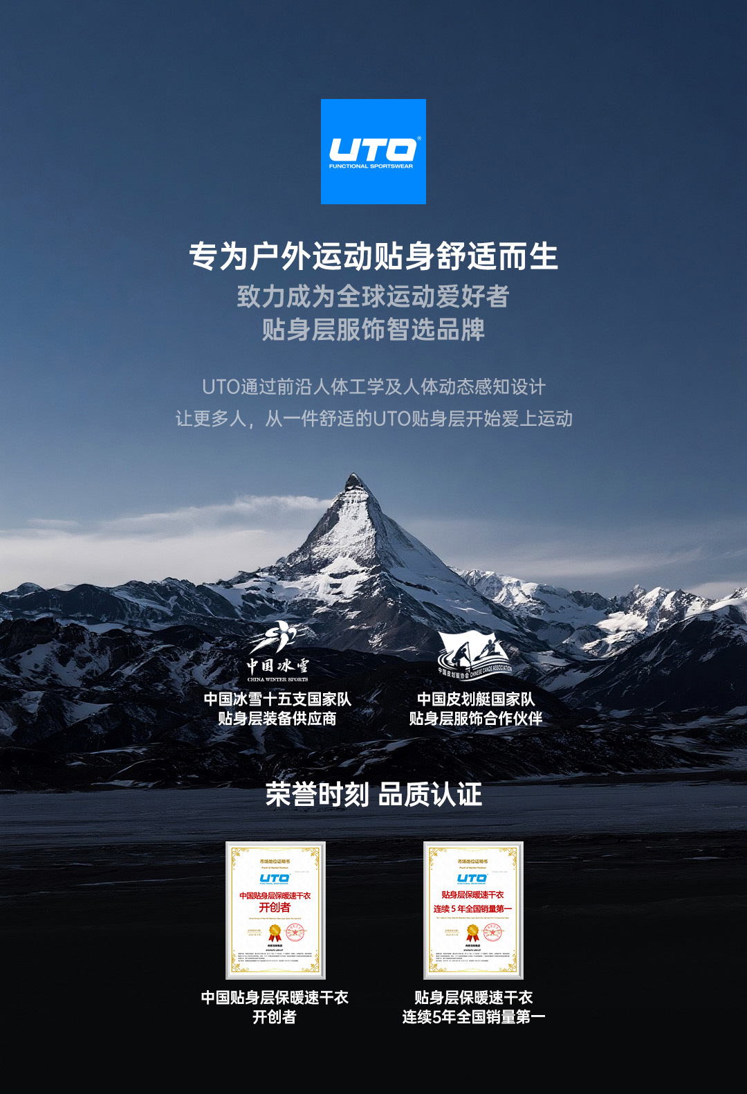 - UTO悠途潜心于贴身运动装备的研发、设计和生产。从纤维到组织,从设计到工艺,在无缝贴身运动装备领域,树立国内标杆。 UTO着力于品牌互联网化,不断采集大量运动数据,为跑步、健身、滑雪等不同类型的运动爱