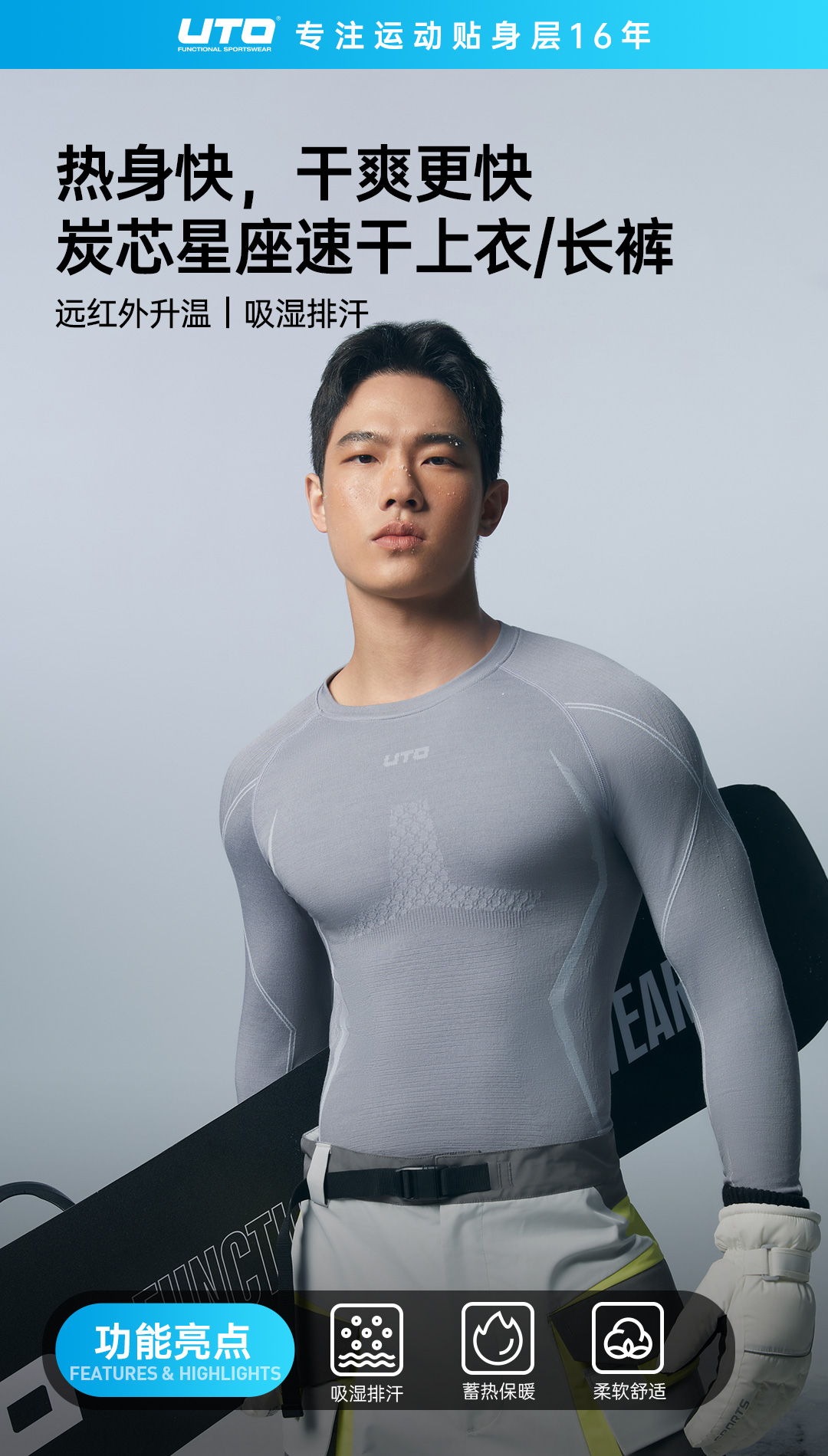 UTO/悠途炭芯星座速干衣男女冬季户外保暖登山滑雪运动长袖内衣