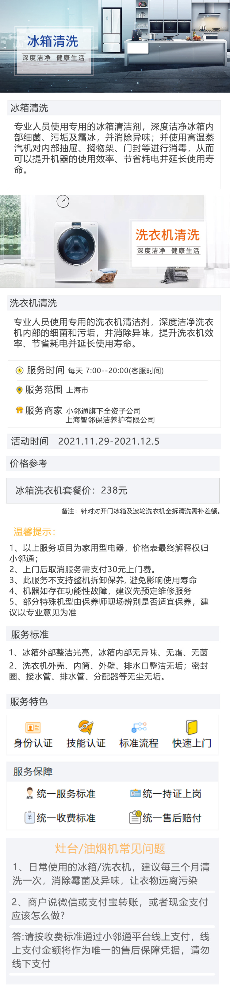 冰箱清洗上门服务时间为7:00-20:00。范围限上海区域。交通不方便地方及个别离公交站距离远的地方不保证能安排;