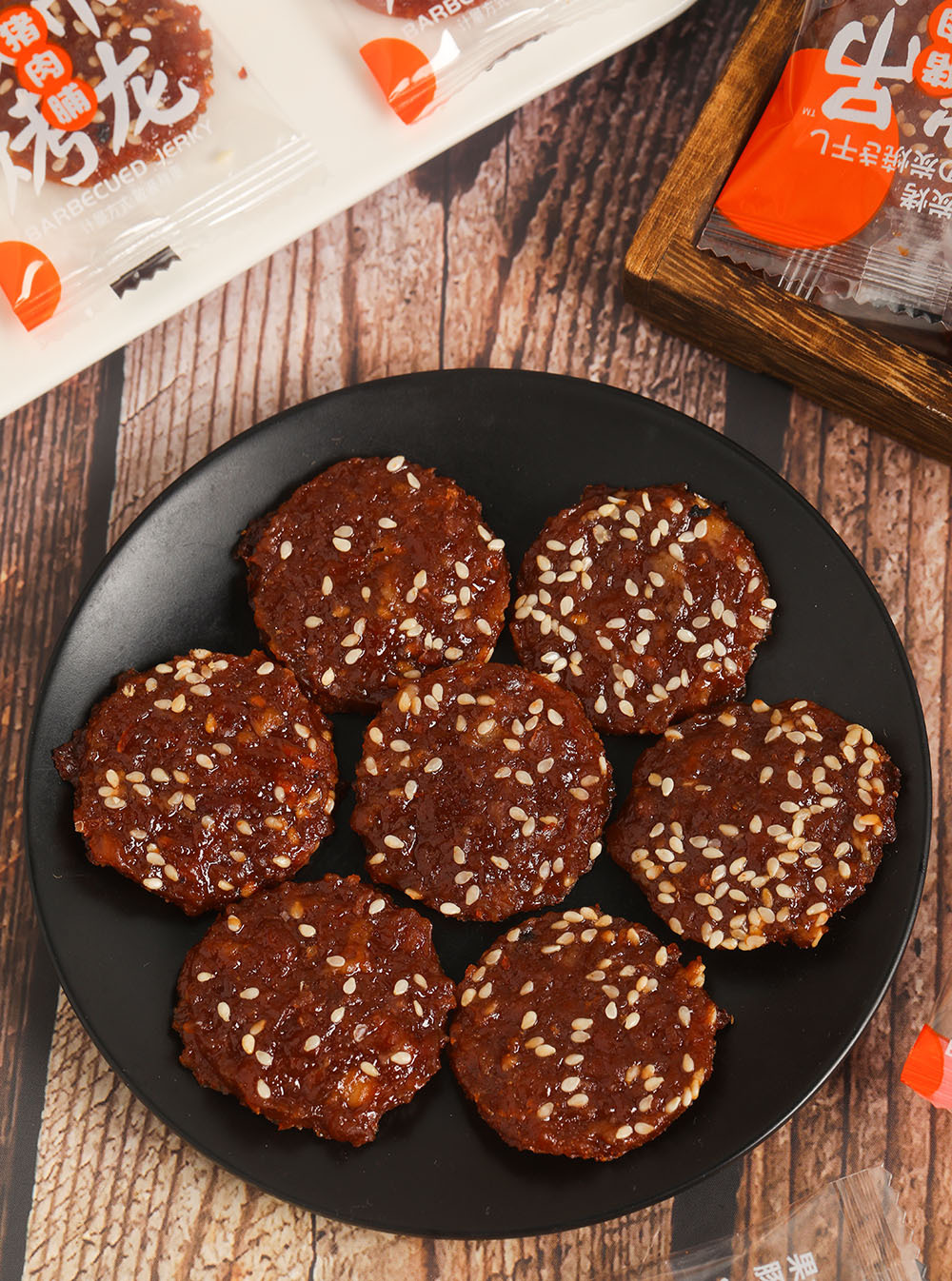 具有灵魂的古法炭烤工艺 荔枝木炭烤让猪肉脯具有独特的果木香,—点都不会腻 特有的果木清香渗入肉脯,滋滋炭烤出焦香在猪肉的口感中还带有一丝丝的木香 那个香味叫—个浓郁哟~风味十分独特 让原本平淡无味的生活,增添了不—样的味道
