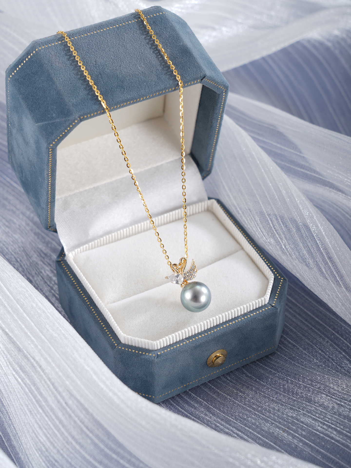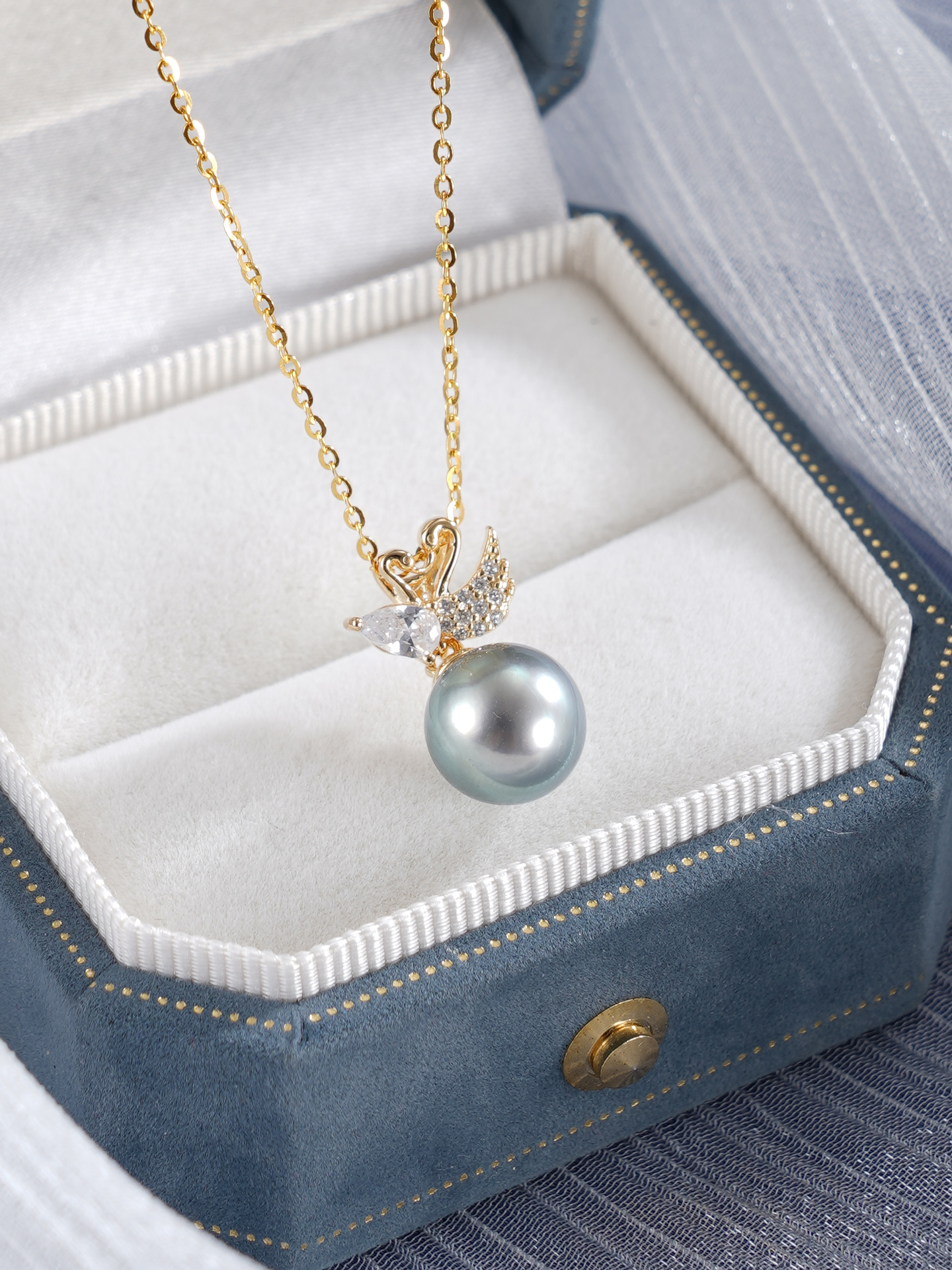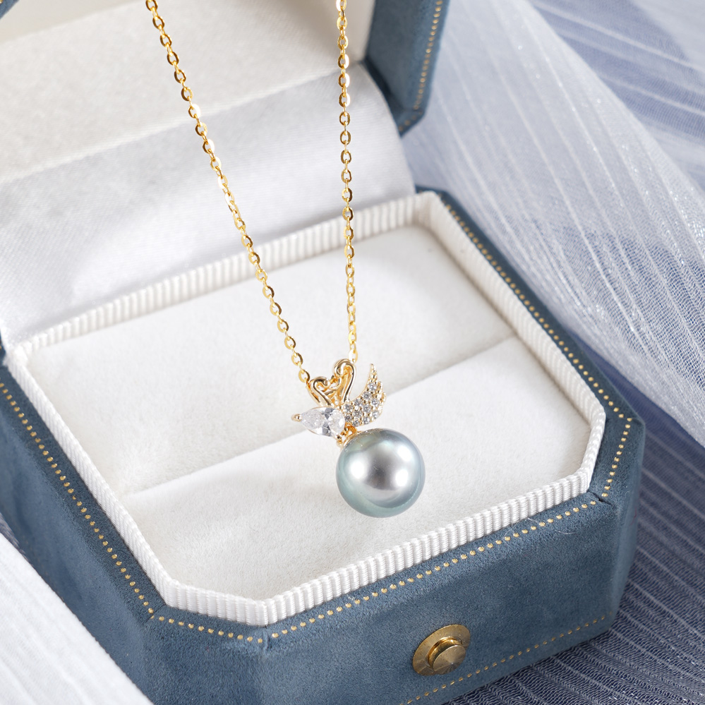 子佩集【天鹅之爱】银S925珍珠惜王妃套链【P1556A】9mm珠镀金黑珠天鹅2601