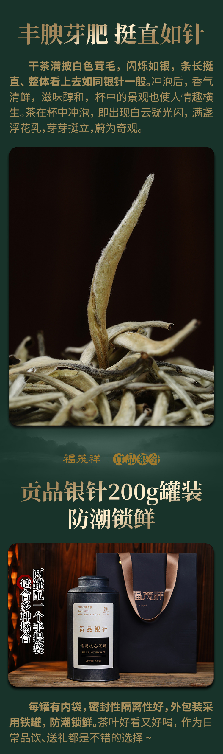 全芽头银针白茶,特级白茶【贡品银针】2023年云南困鹿山皇家茶园白茶200g罐装 【拍5发6罐】