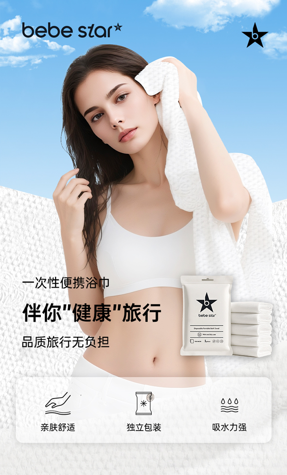 【亲肤加厚】BEBESTAR一次性洗浴柔巾旅行运动便捷加厚加大独立包装