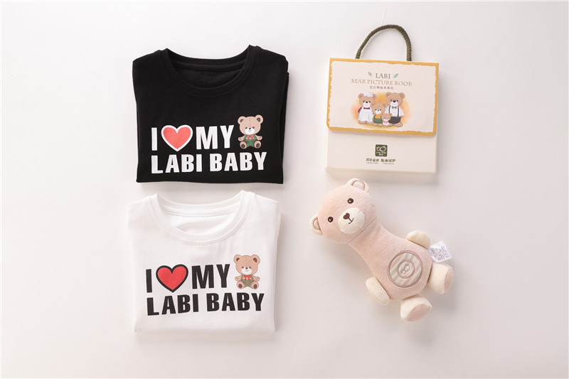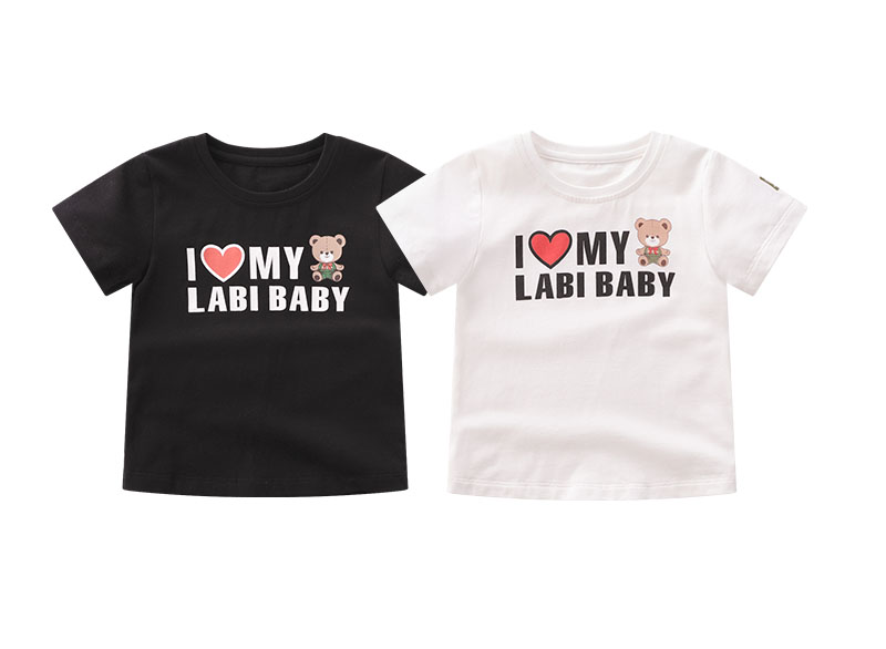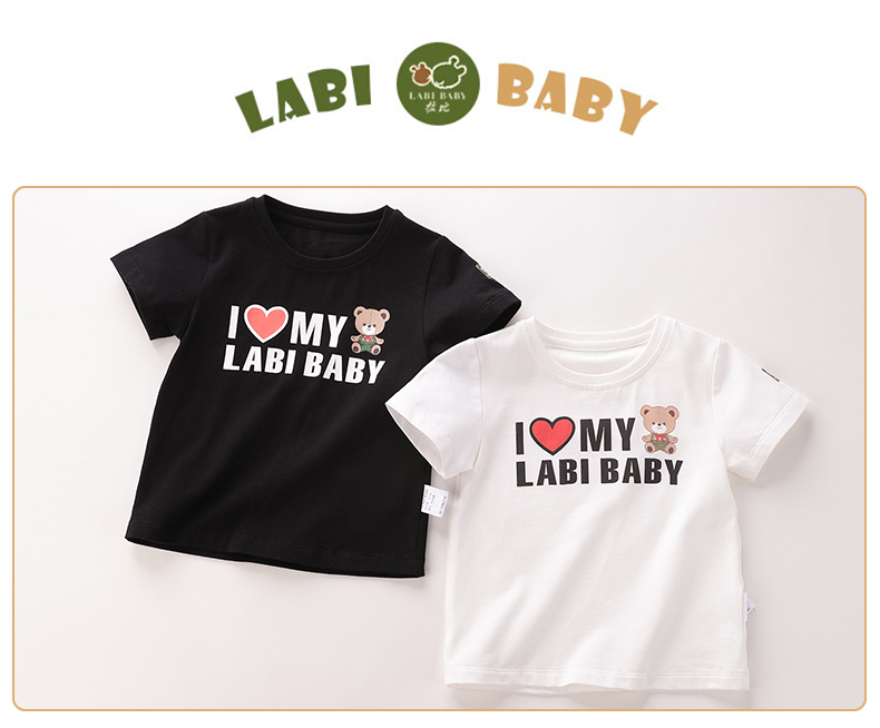 拉比-童衣类(夏)D0英文圆领短袖衣米白
