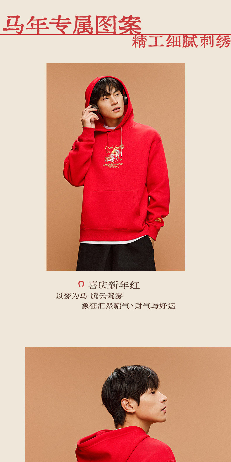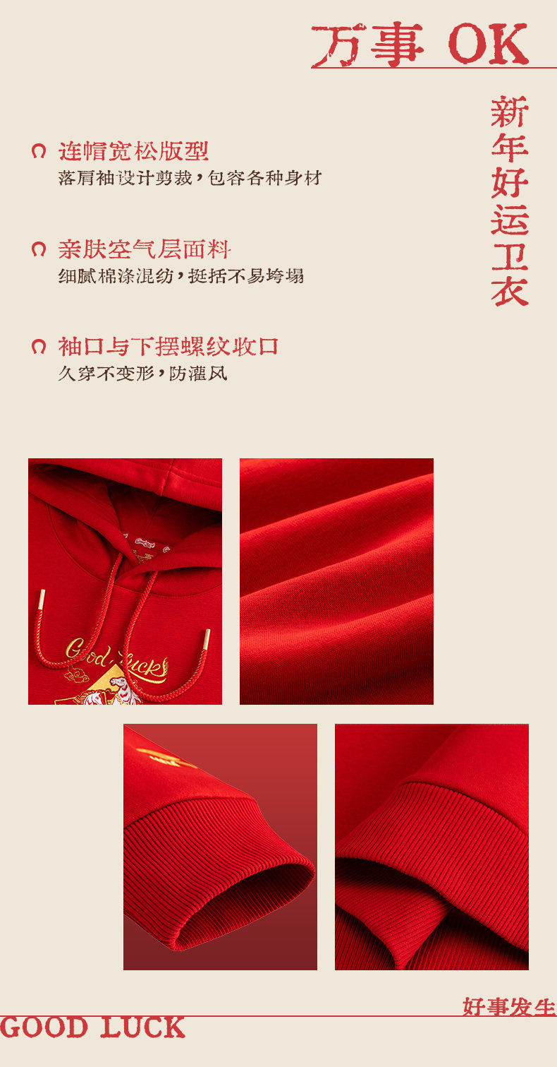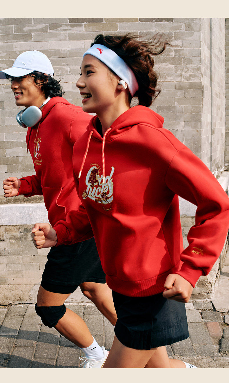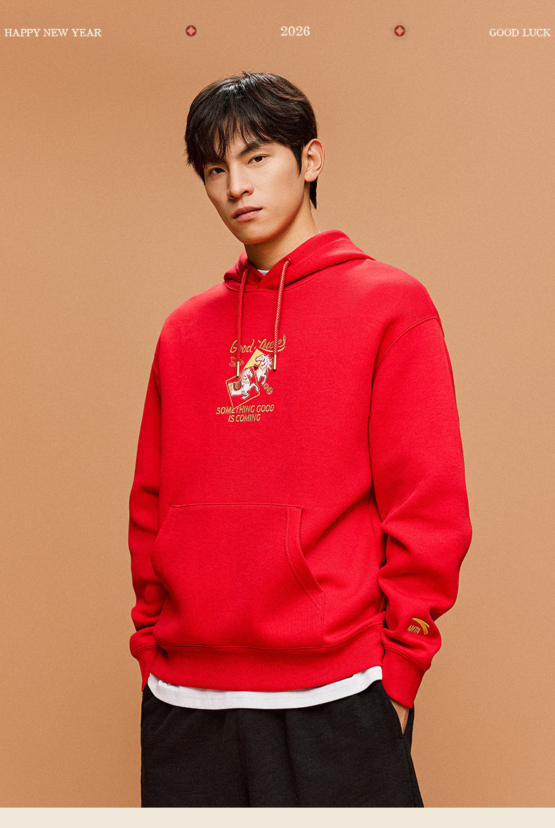 安踏好事发生卫衣男连帽衫套头新年红运动上衣152618707S-2