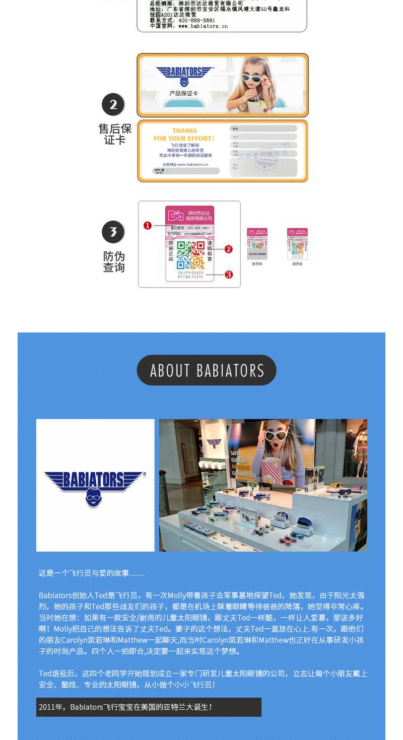 美国babiators进口儿童太阳眼镜飞行宝宝男女童婴儿防晒墨镜1-6岁