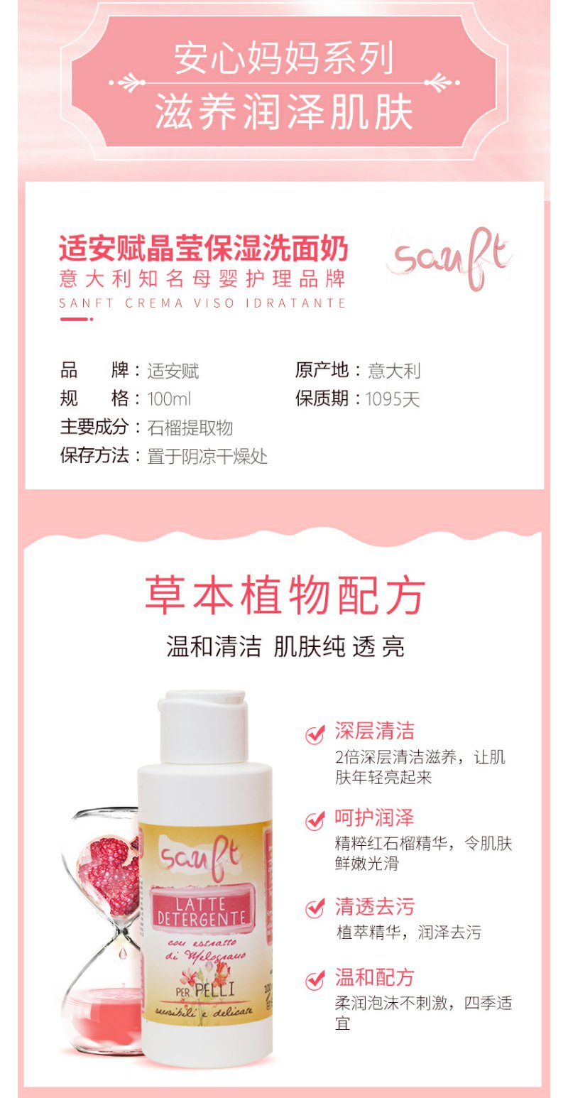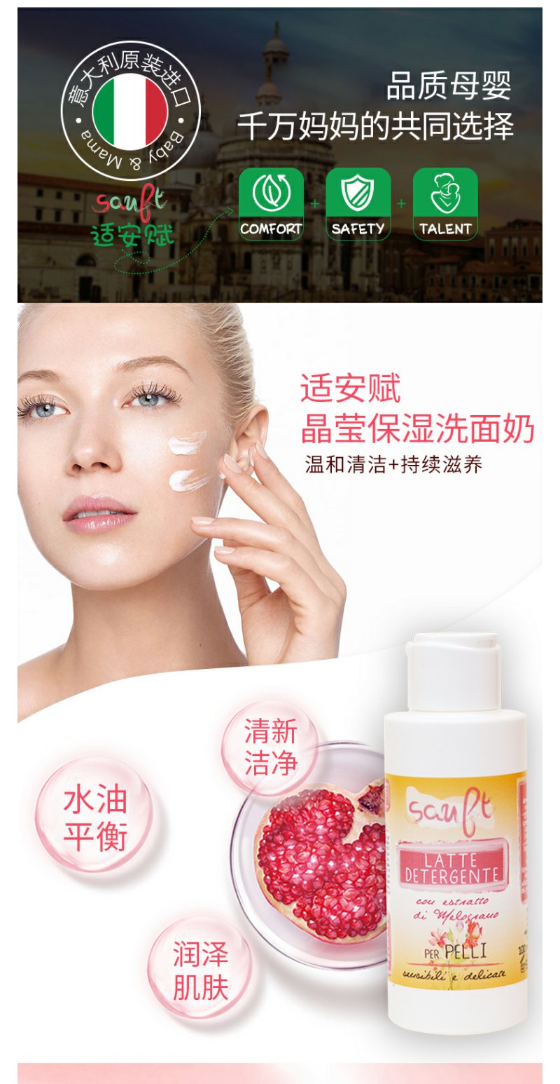 意大利适安赋晶莹保湿洗面奶100ml水油平衡清新洁净润泽肌肤