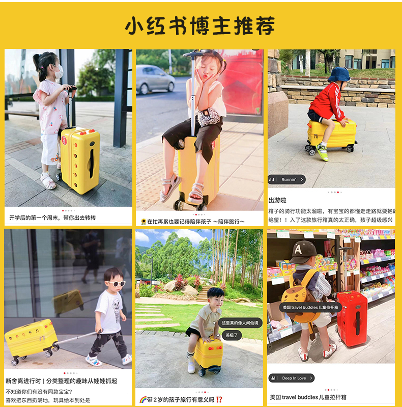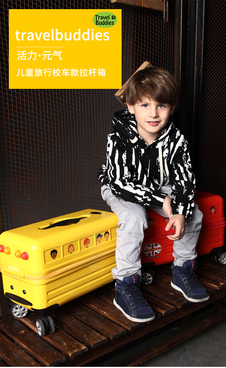 美国travel buddies儿童拉杆箱宝宝可坐可骑时尚万向轮静音行李箱17寸