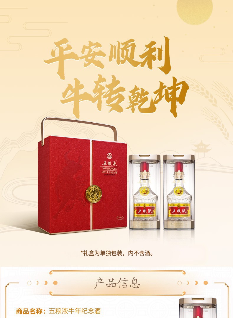(赠品勿拍)五粮液牛年纪念酒(500ml×2) 空盒