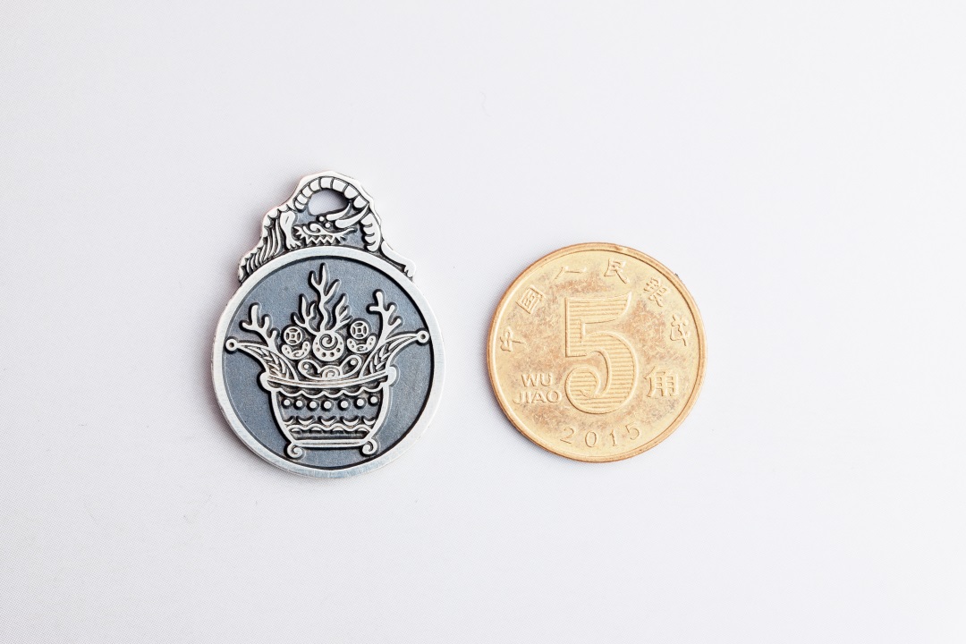 矩德泉坊 纯银手作 平安吉庆龙首挂花(2.8厘米版)gq230200666