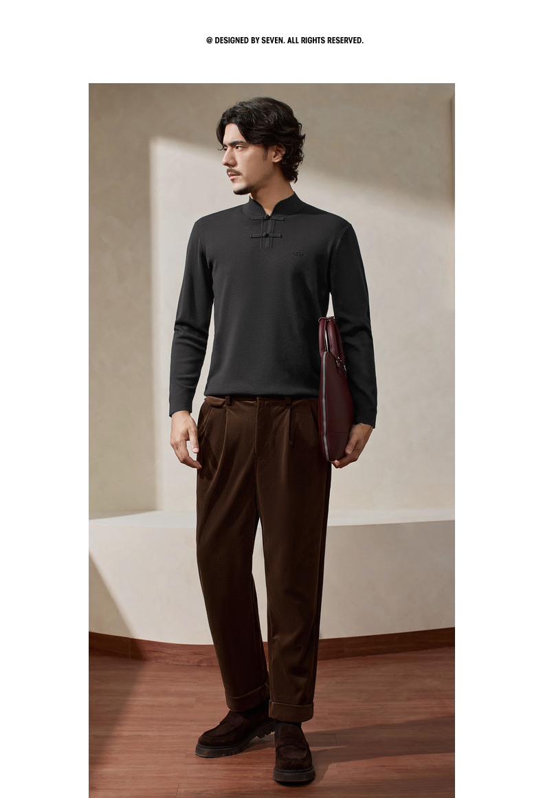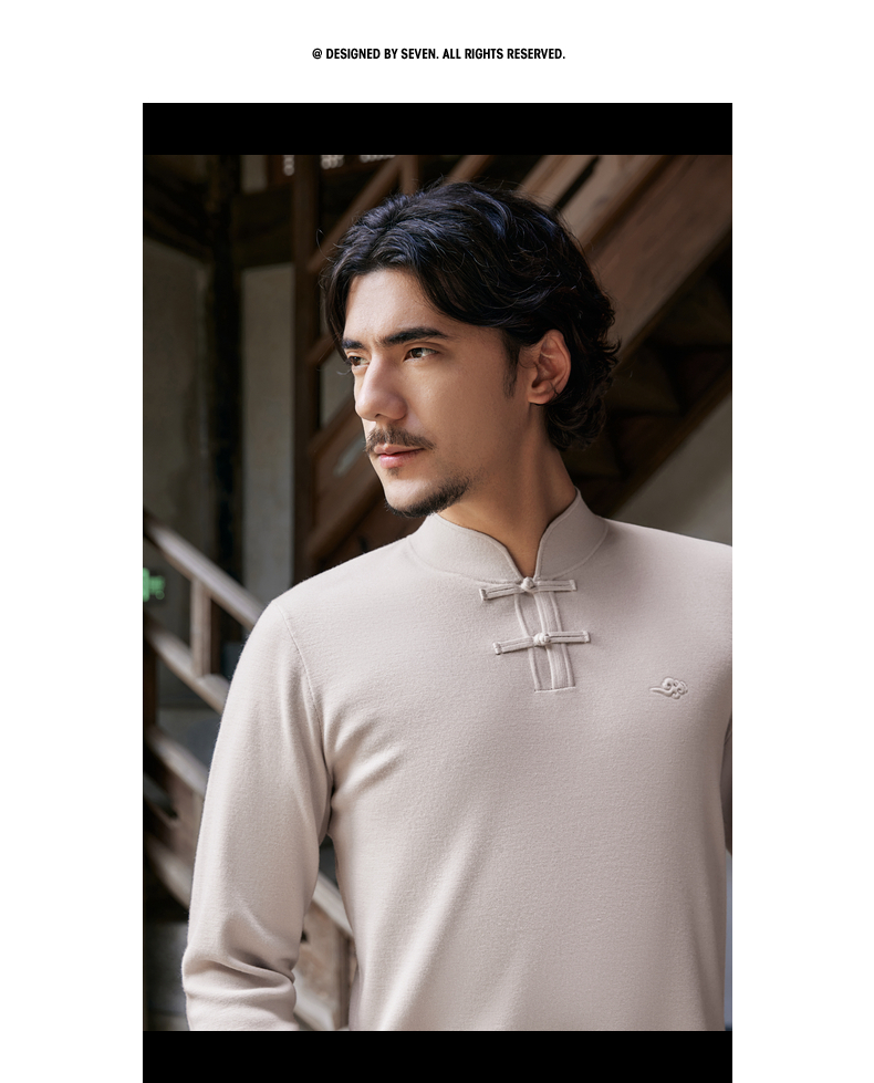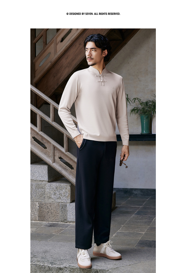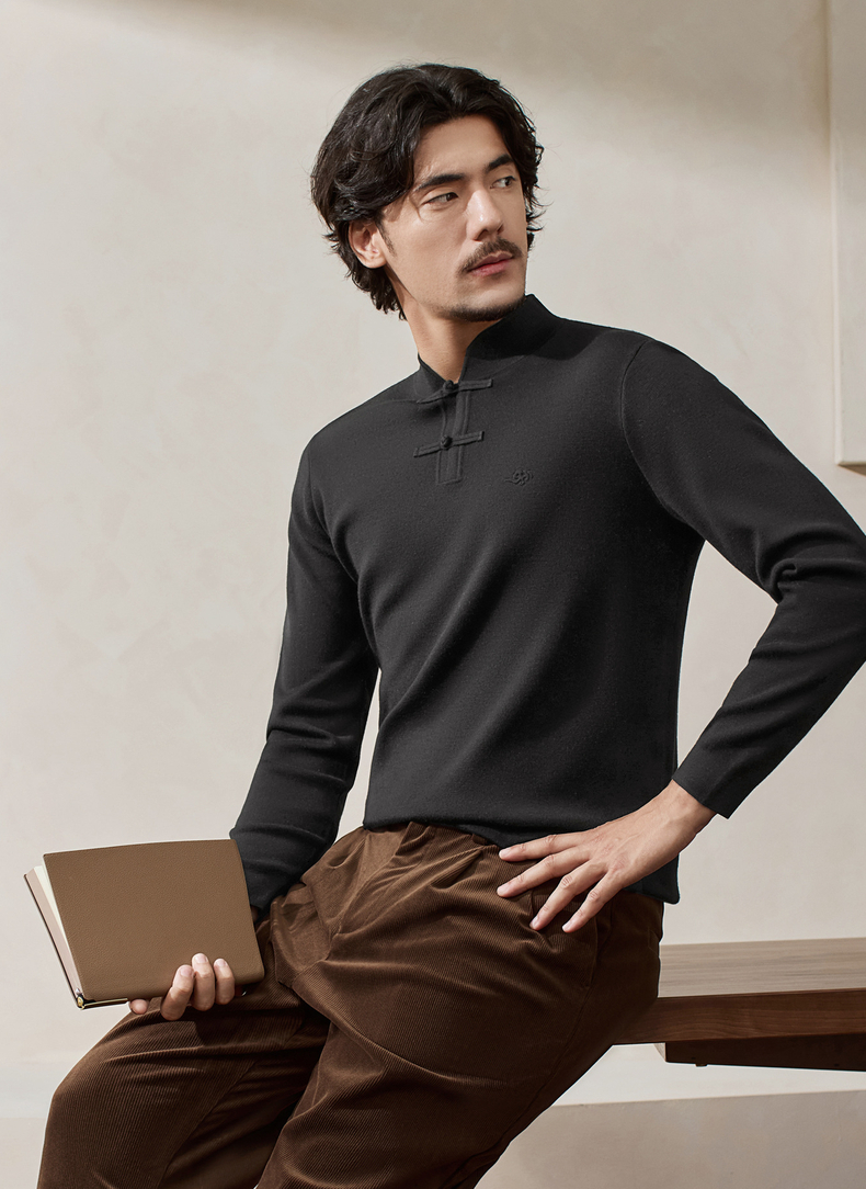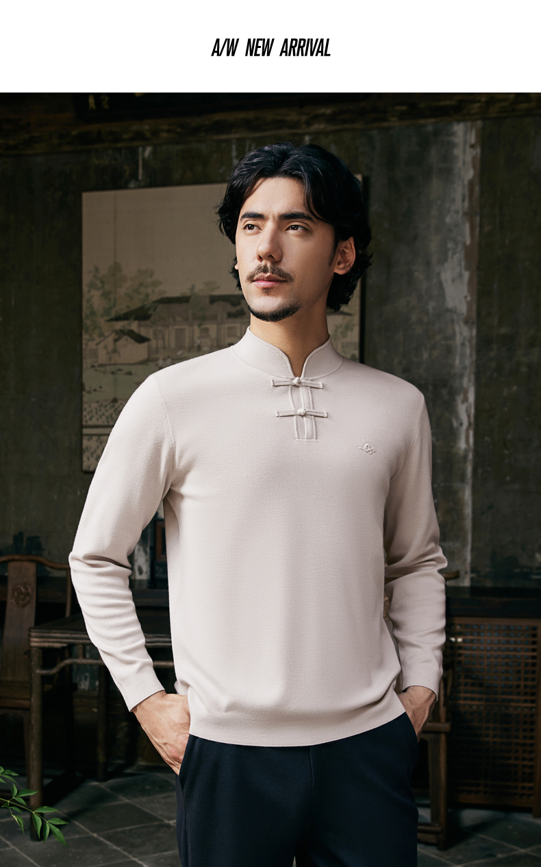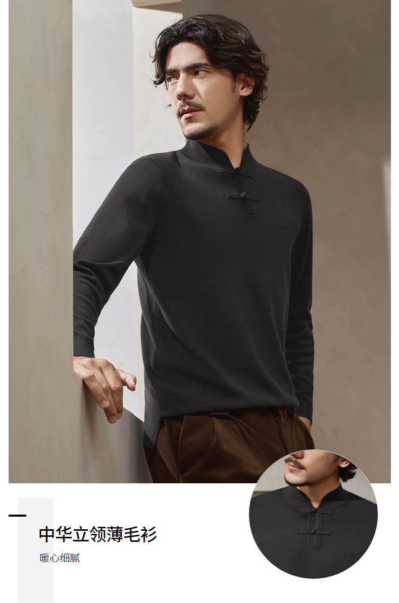 【国风新中式/含羊毛】柒牌男装立领盘扣新中式商务套头薄毛衫129Y70990